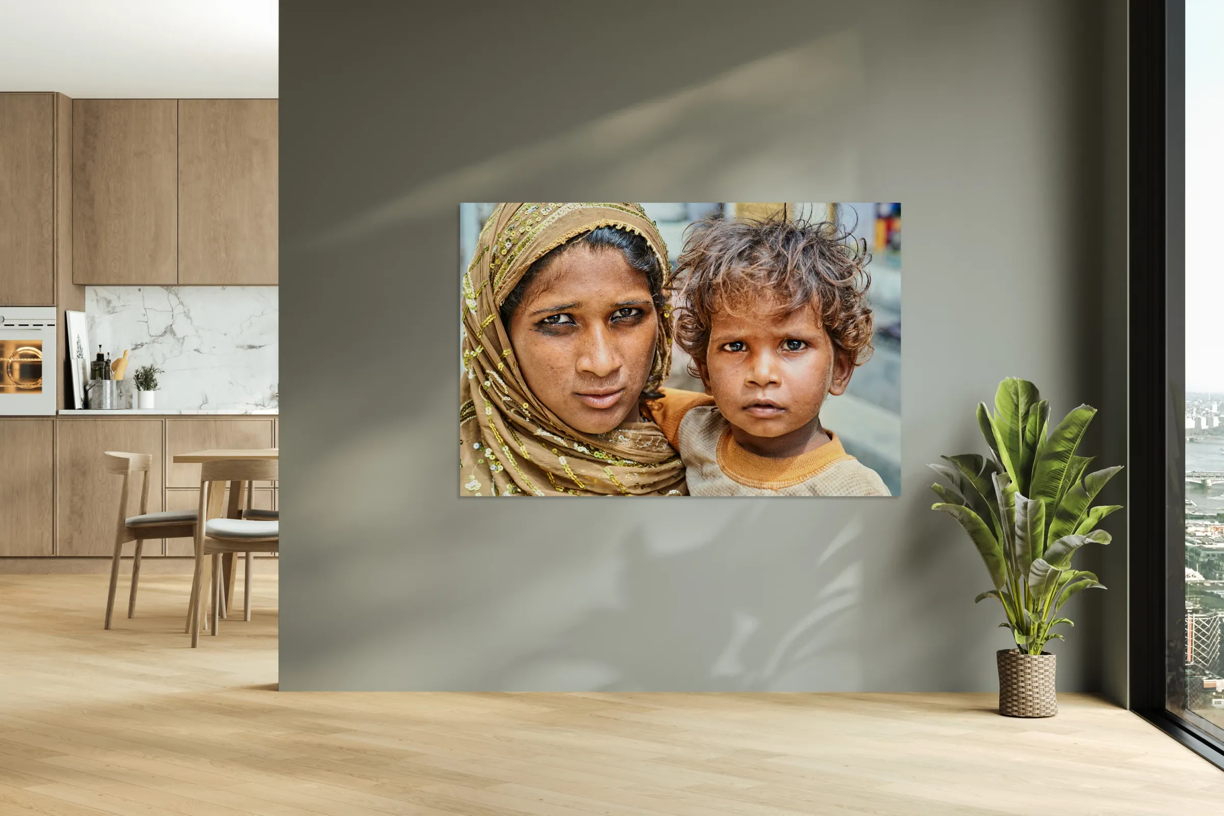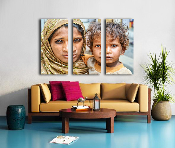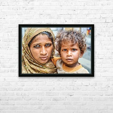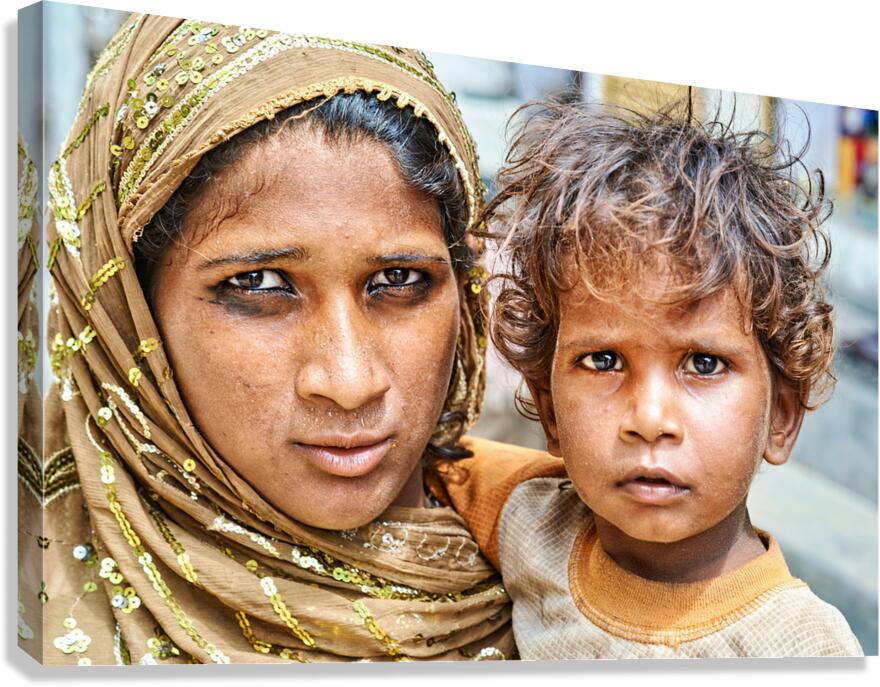 Get this artwork "Mother and son standing together in Mandawa Rajasthan" in a framed print.