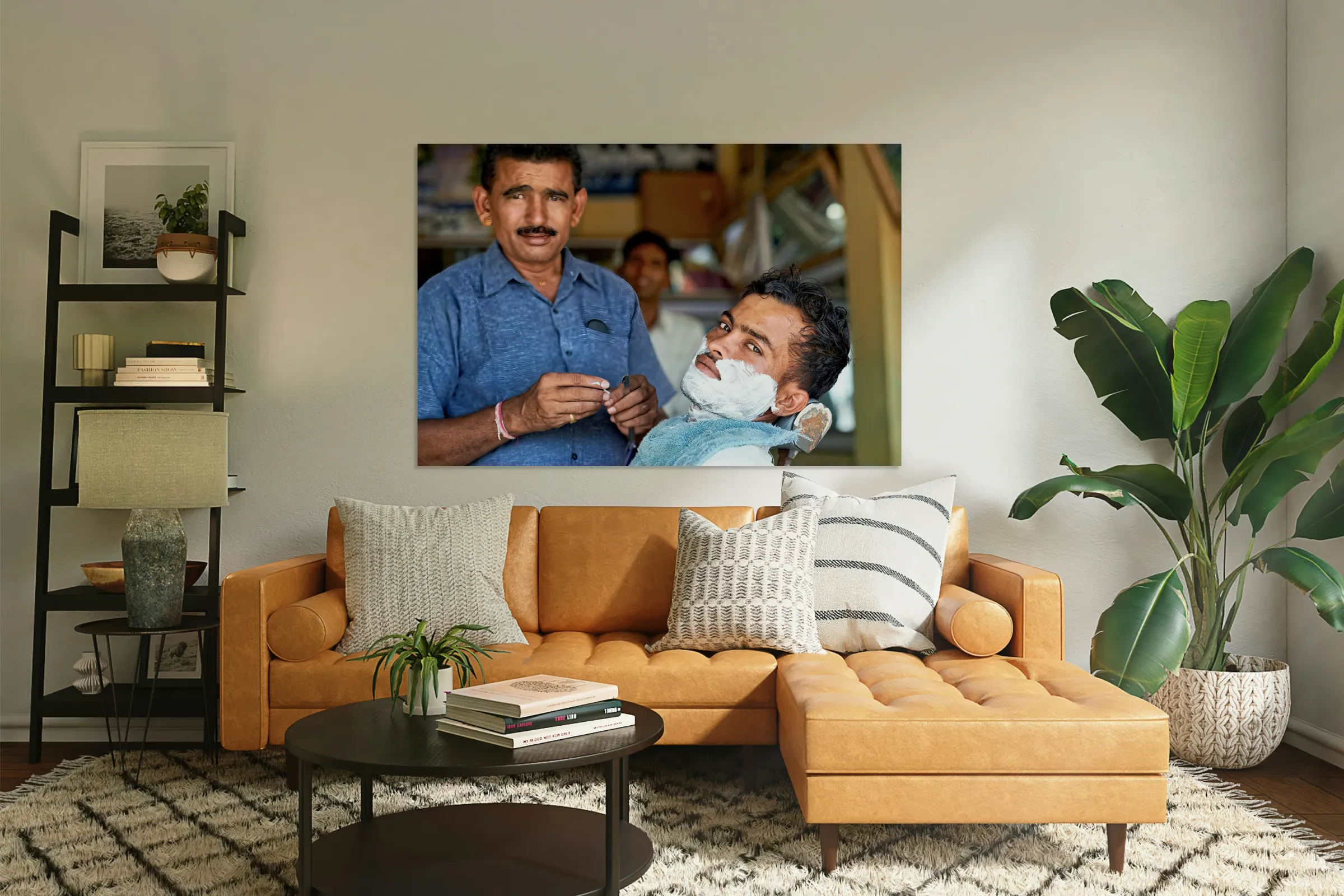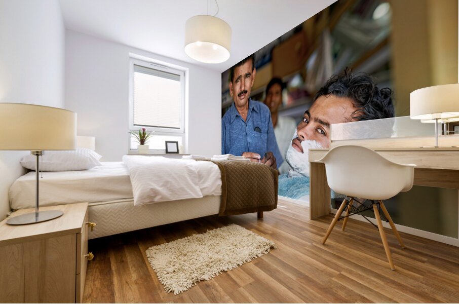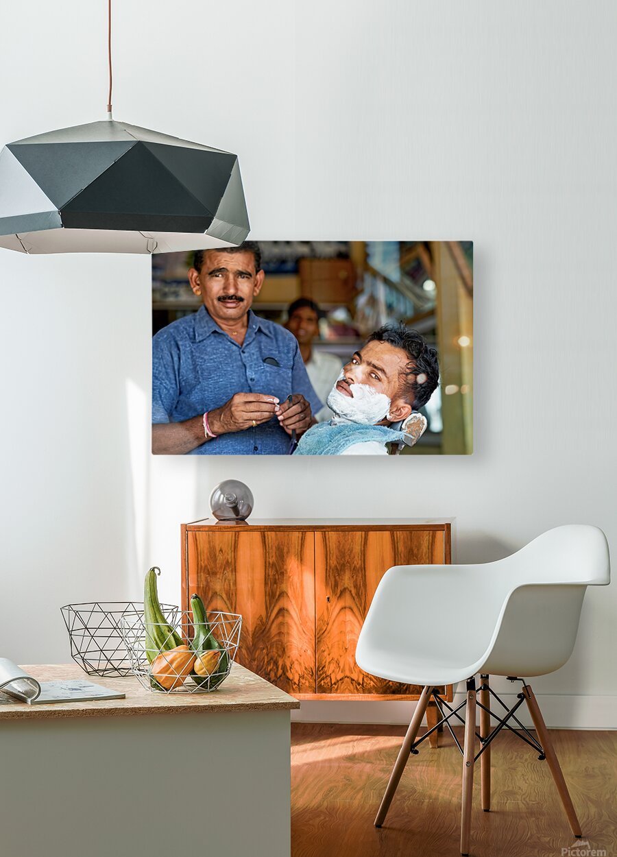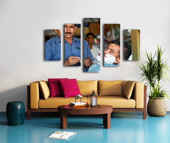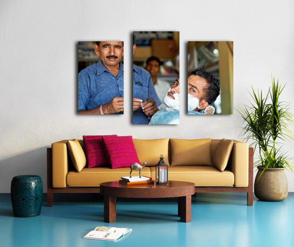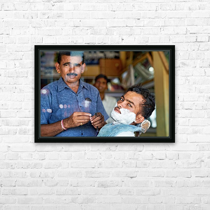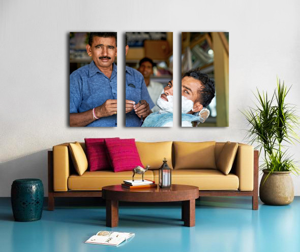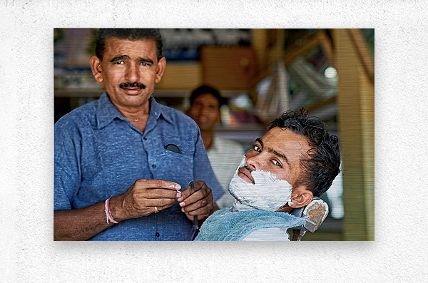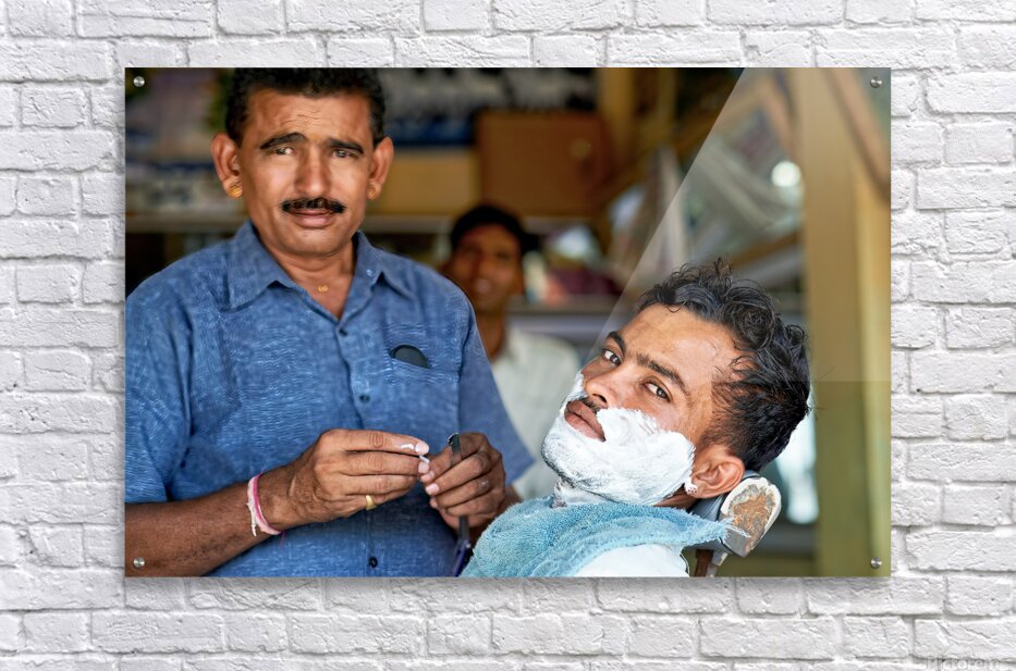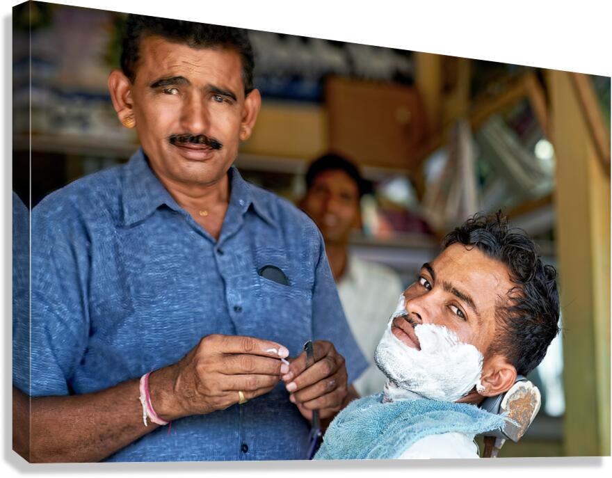 Get this artwork "Barber at work in Khimsar Rajasthan India during a busy day" in a framed print.