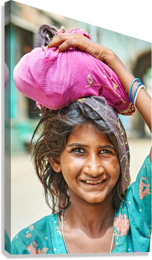 Get this artwork "Portrait of a young girl carrying cloth in Mandawa Rajasthan" in a framed print.