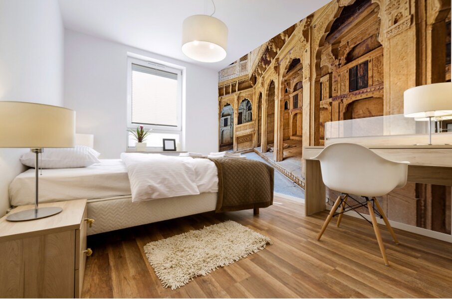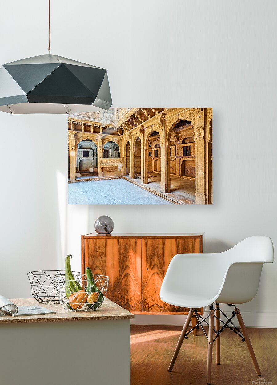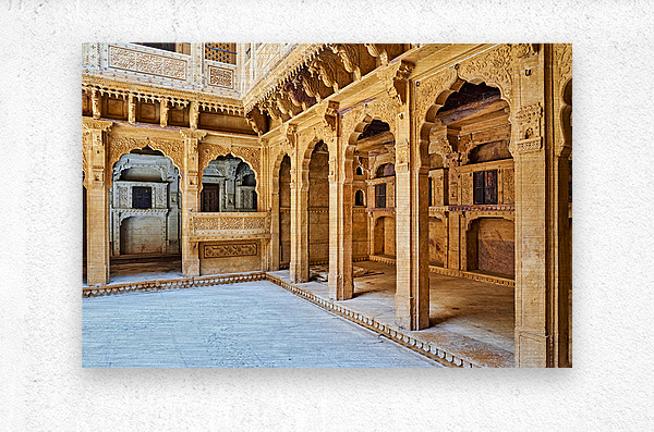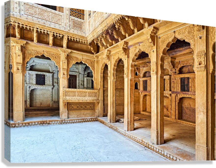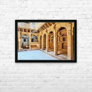 Get this artwork "Exploring a traditional haveli house in Jaisalmer Rajasthan" in a framed print.