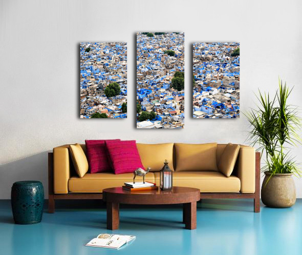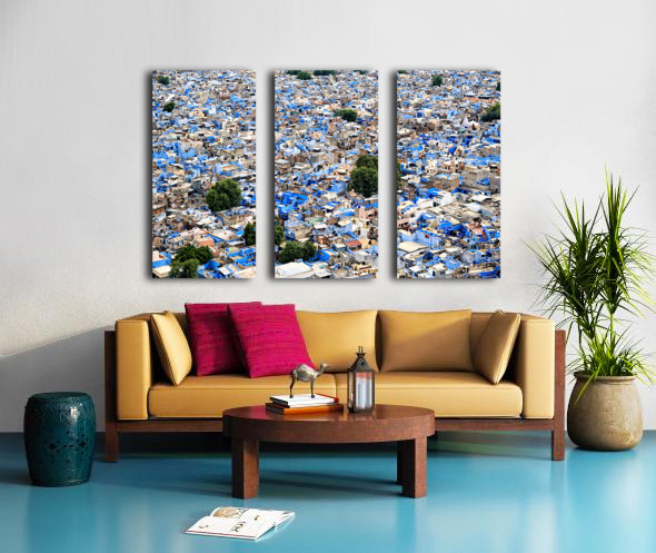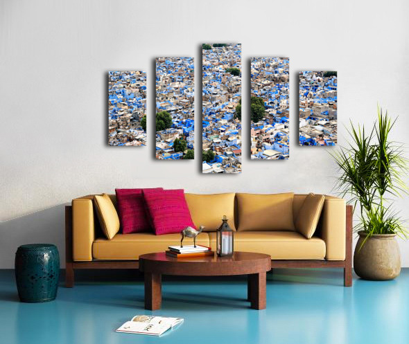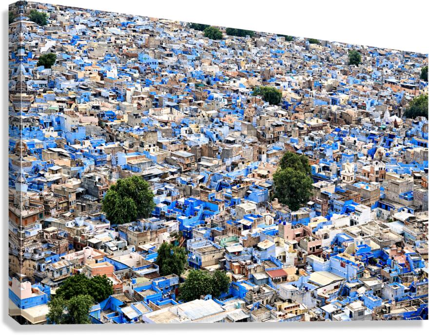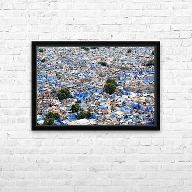 Get this artwork "Cityscape view of blue houses in Jodhpur Rajasthan in India" in a framed print.