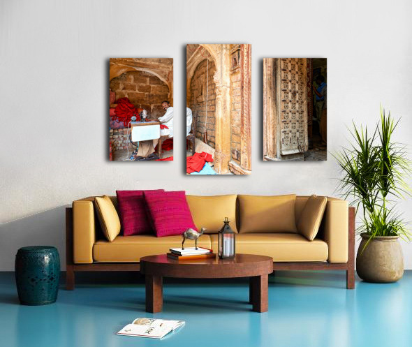 Get this artwork "Traditional haveli house in Jaisalmer Rajasthan with tailor wor" in a framed print.