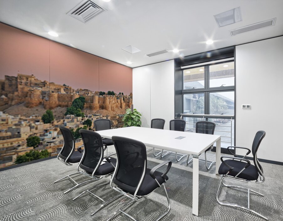 Jaisalmer shows its cityscape at sunset with buildings and fort in view. The landscape captures the essence of Rajasthans culture and history.