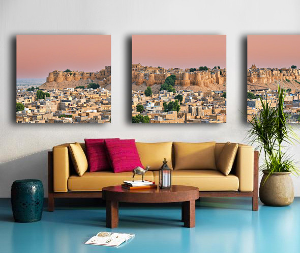ABOUT THIS ARTWORK: CITYSCAPE OF JAISALMER DURING SUNSET IN RAJASTHAN