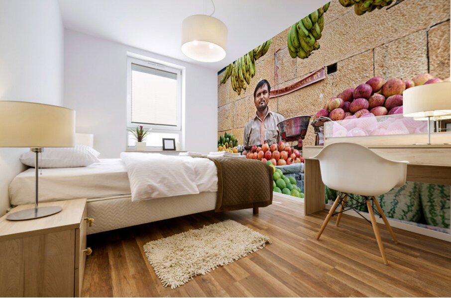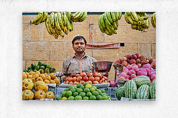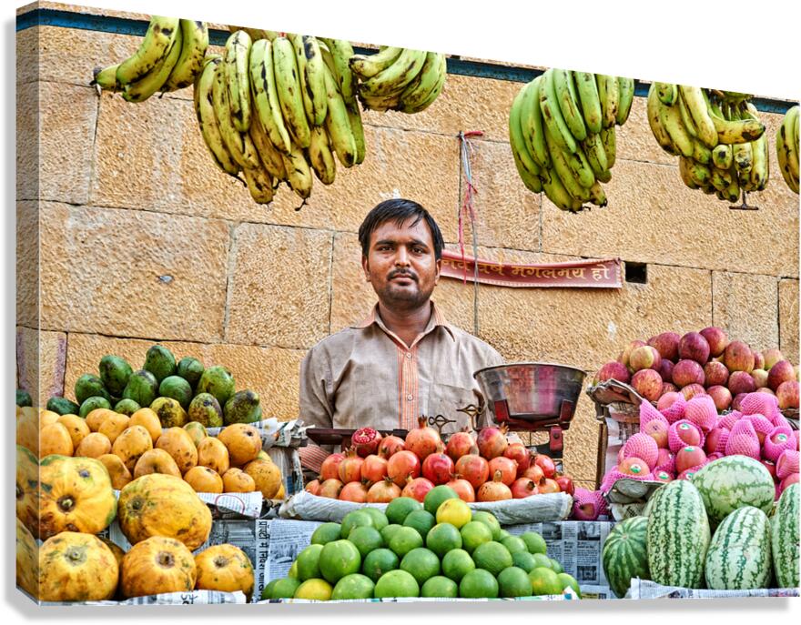 ABOUT THIS ARTWORK: FRUITS AND VEGETABLES STALL IN JAISALMER WITH VENDOR AT WORK