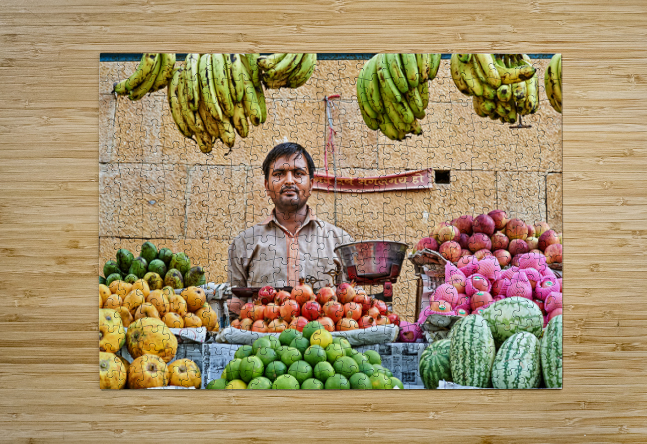 Fruits and vegetables stall in Jaisalmer with vendor at work Marco Brivio Puzzle