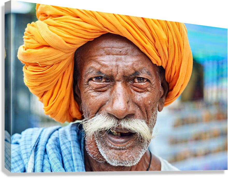 Get this artwork "Old man in Bundi Rajasthan showing traditional culture and attir" in a framed print.