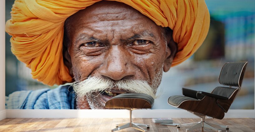Old man in Bundi Rajasthan showing traditional culture and attir Marco Brivio Puzzle printing