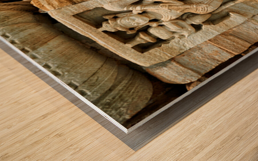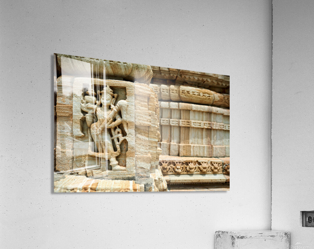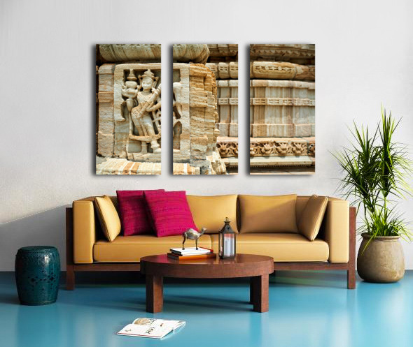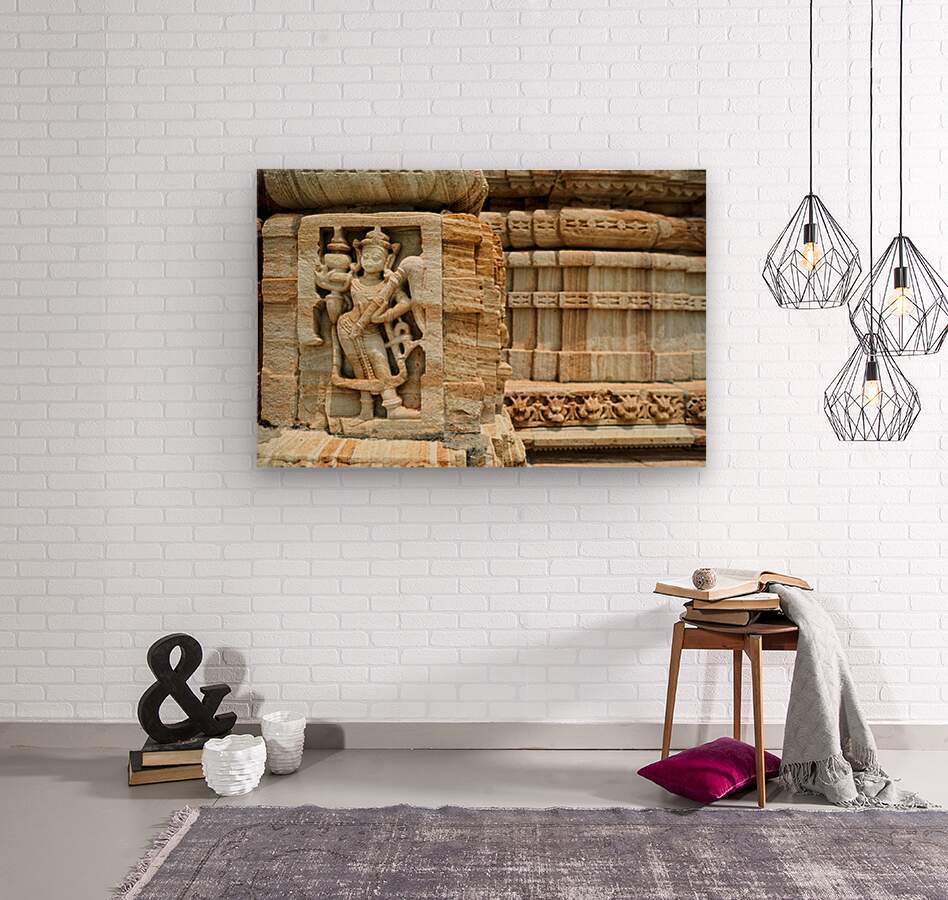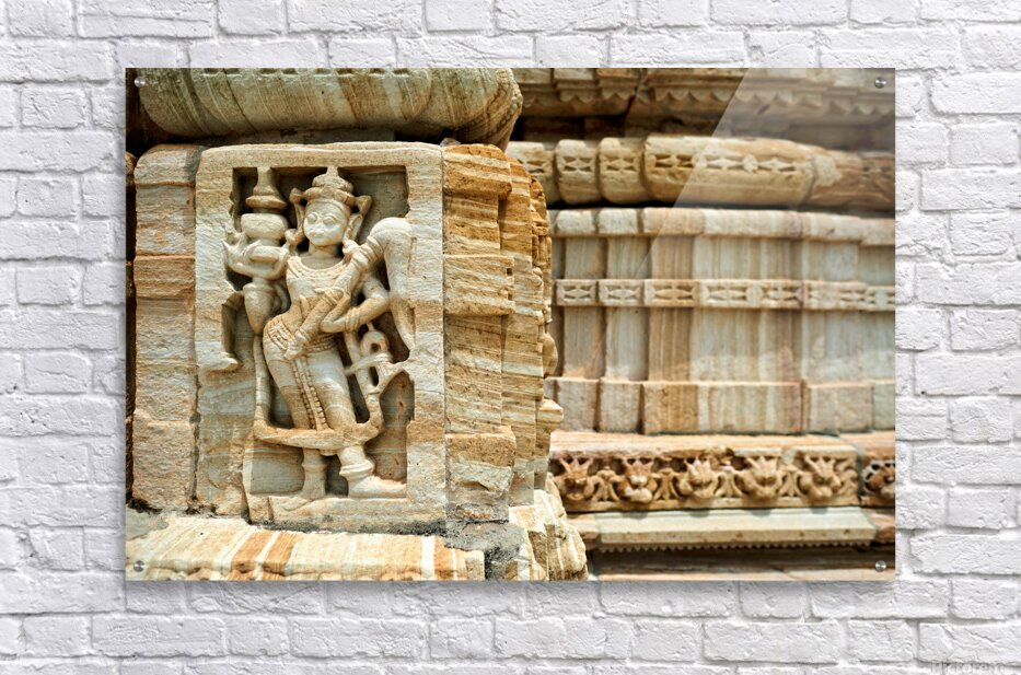 An ancient carving of a deity is seen on a stone wall at Chittorgarh Fort. The details show artistic skill and cultural history.