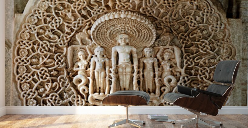 Jain old temples in Ranakpur showcase detailed carvings. Visitors admire the skillful craftsmanship of the stone work.