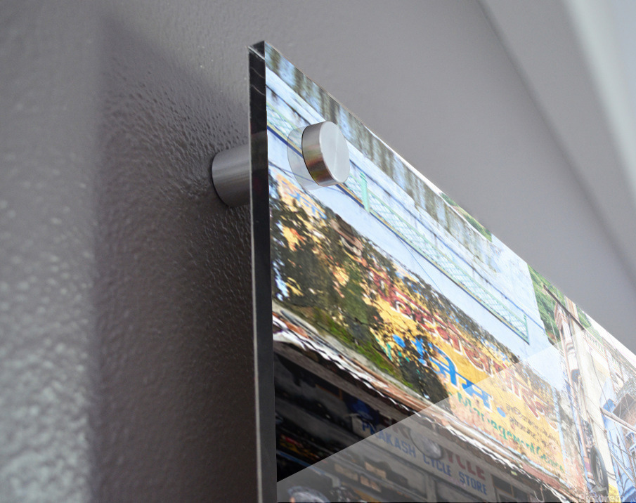 Printed to the edge - Ready to hang - provided with 4 premium polished aluminum stand off ( wall screws and mounting hardware provided )