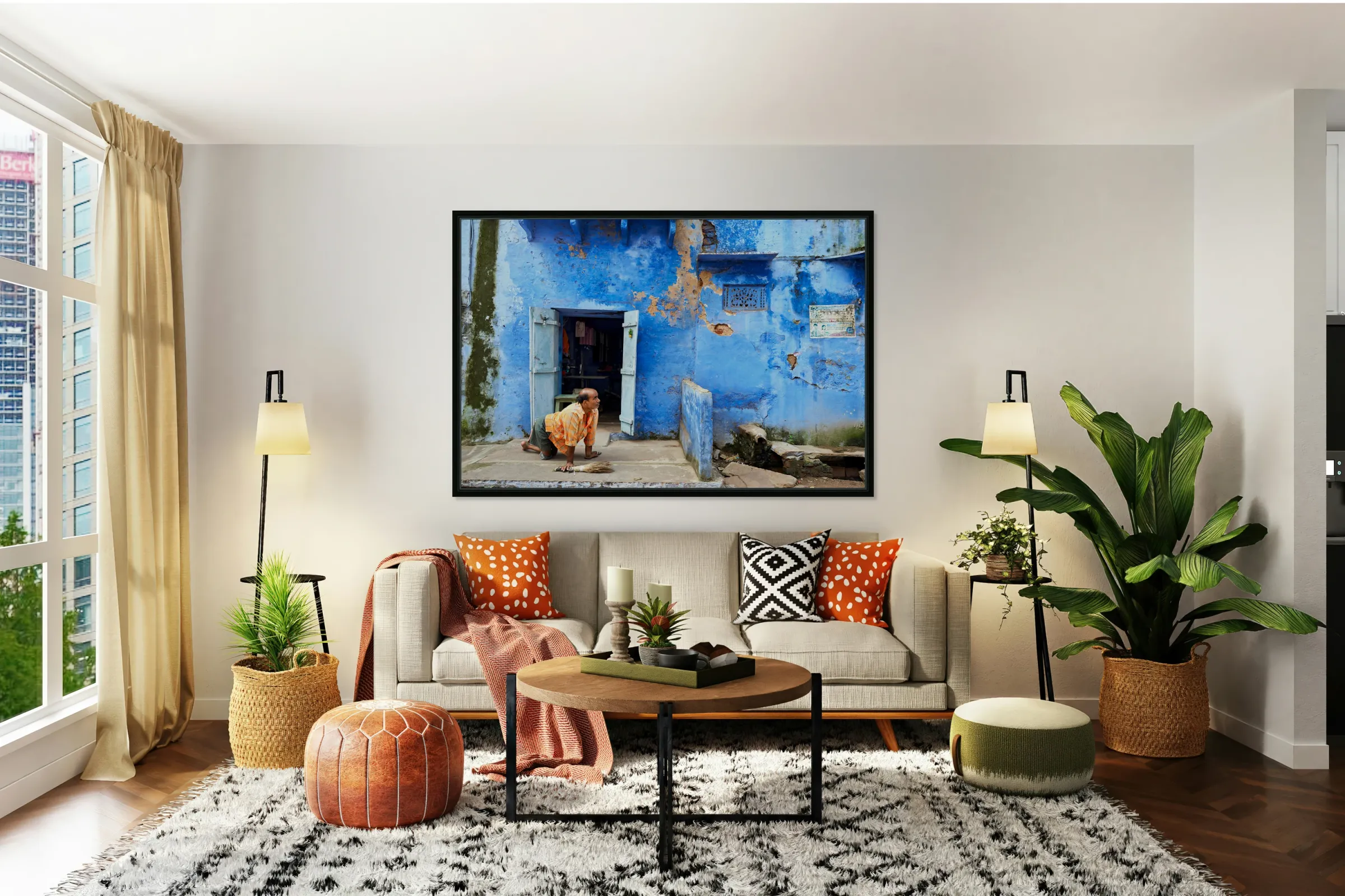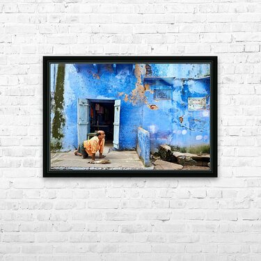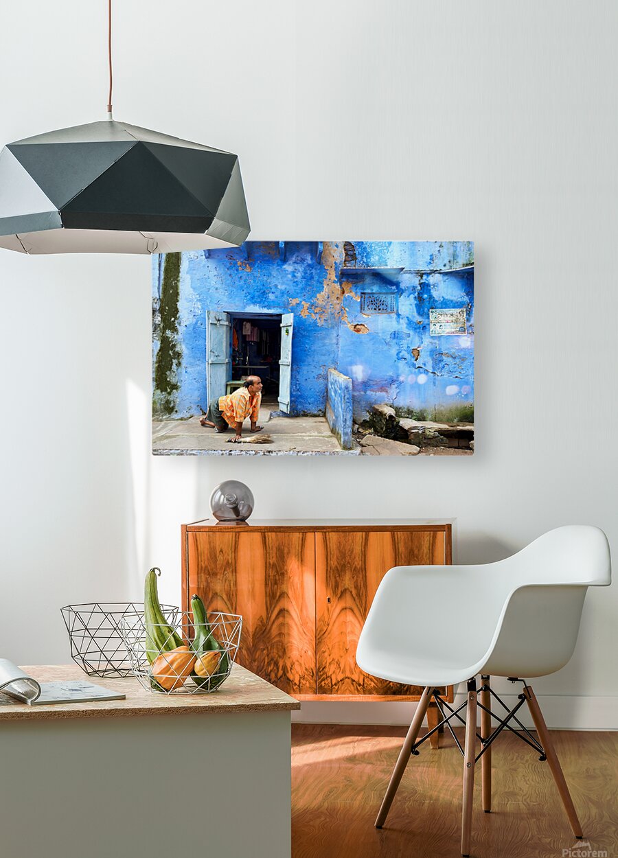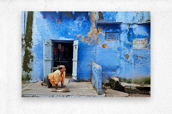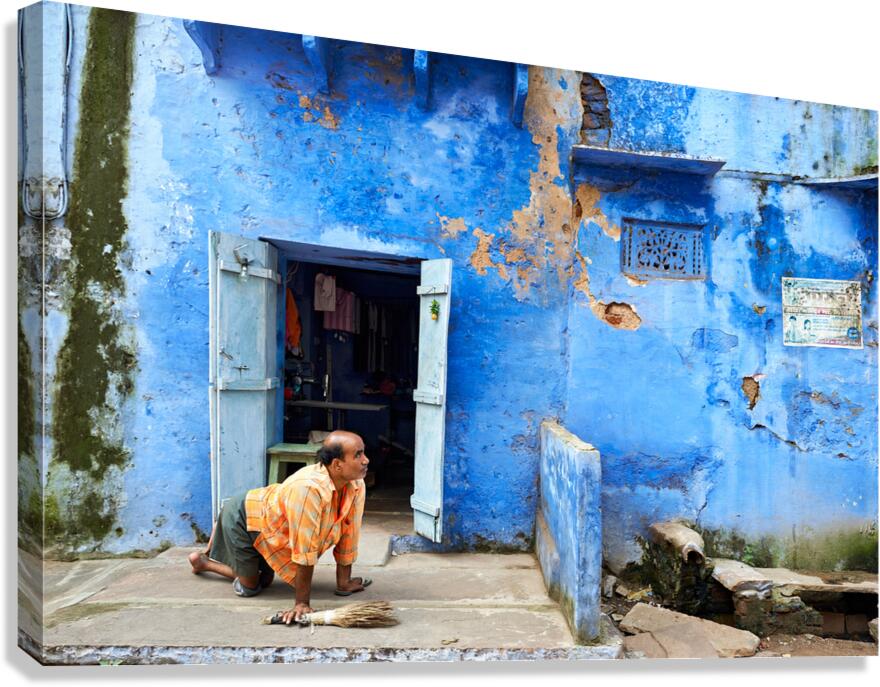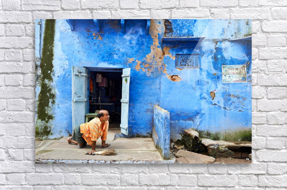 Get this artwork "Man sweeps in front of home in Bundi Rajasthan during the day" in a framed print.