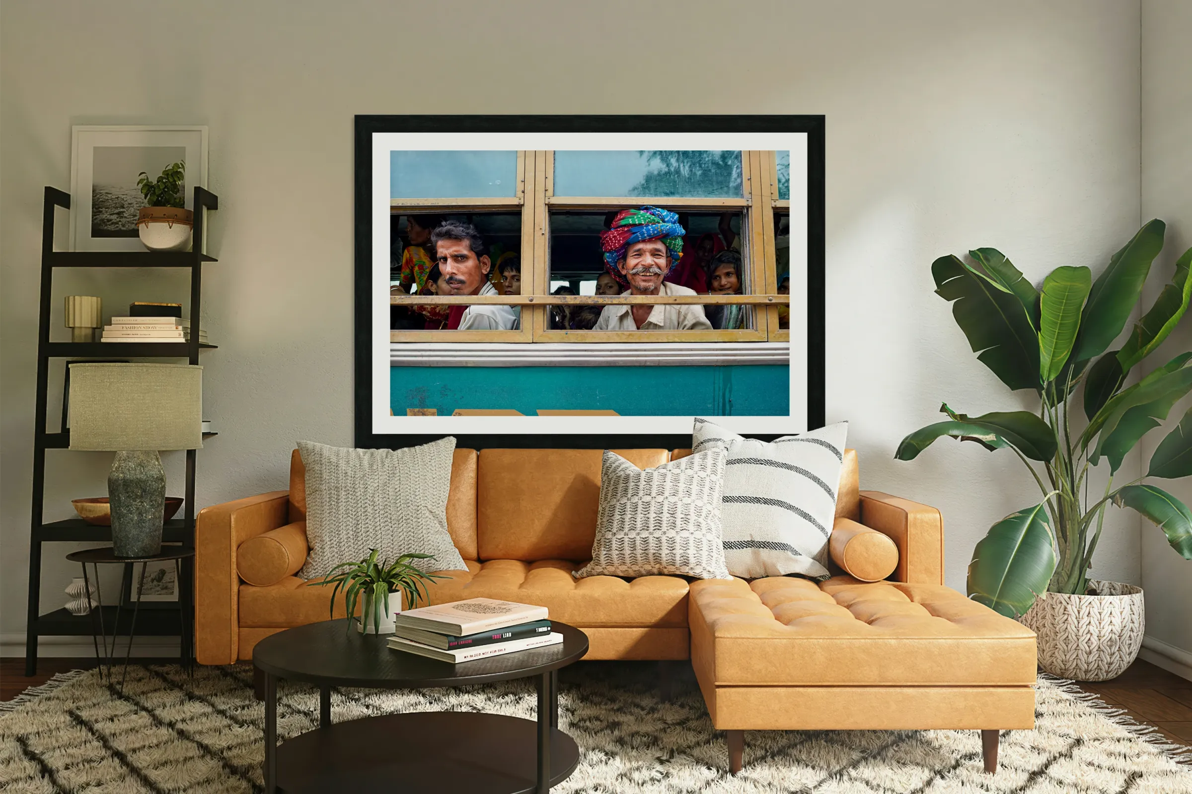 Get this artwork "Passengers travel on bus in Udaipur Rajasthan India" in a framed print.