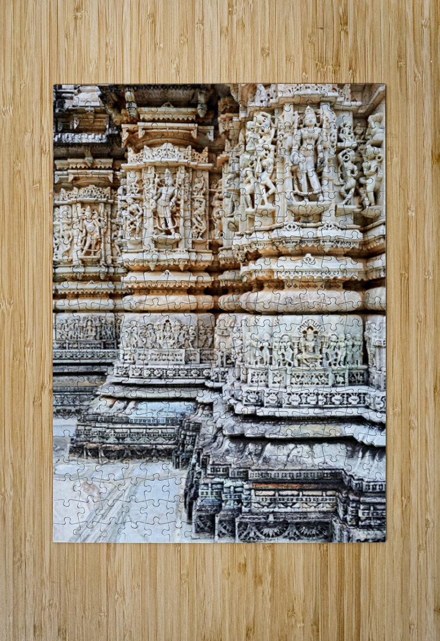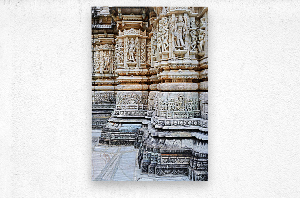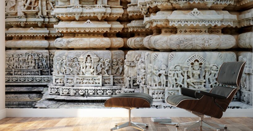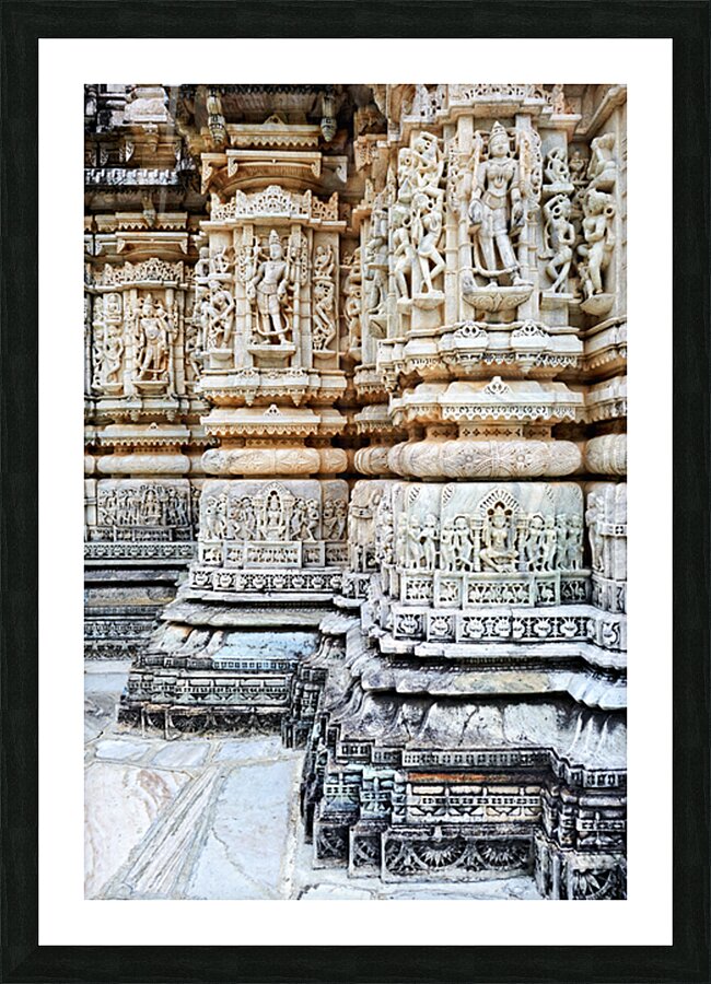 The Jain old temples in Ranakpur show intricate carvings on stone pillars showcasing the craftsmanship of the builders in Rajasthan.