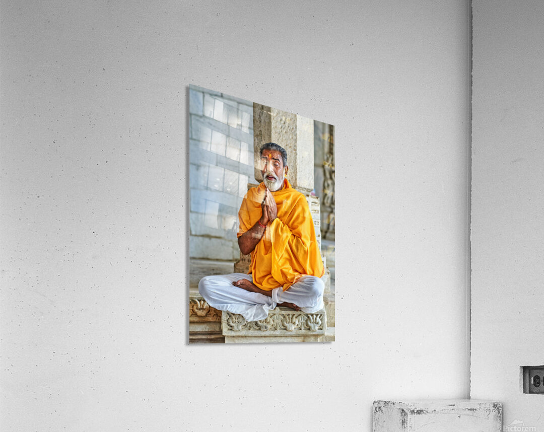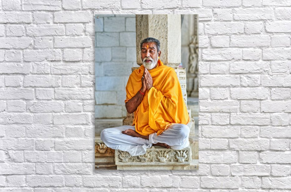 Get this artwork "Man prays in Jain temple in Ranakpur Rajasthan during the day" in a framed print.