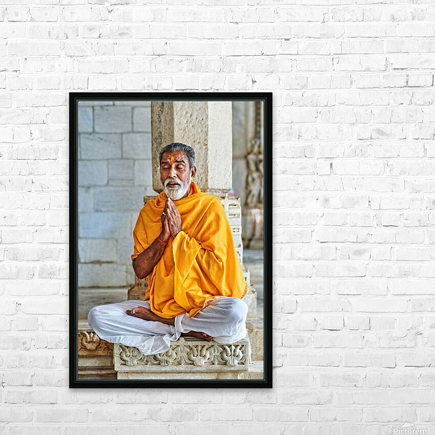 Man prays in Jain temple in Ranakpur Rajasthan during the day Picture Frame Printing