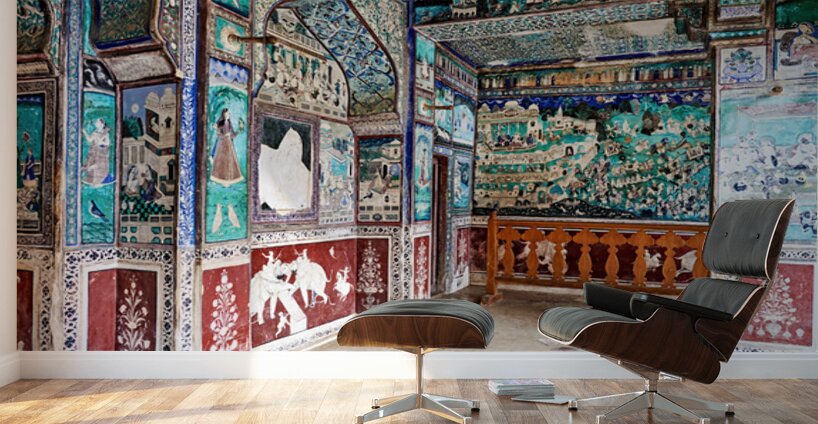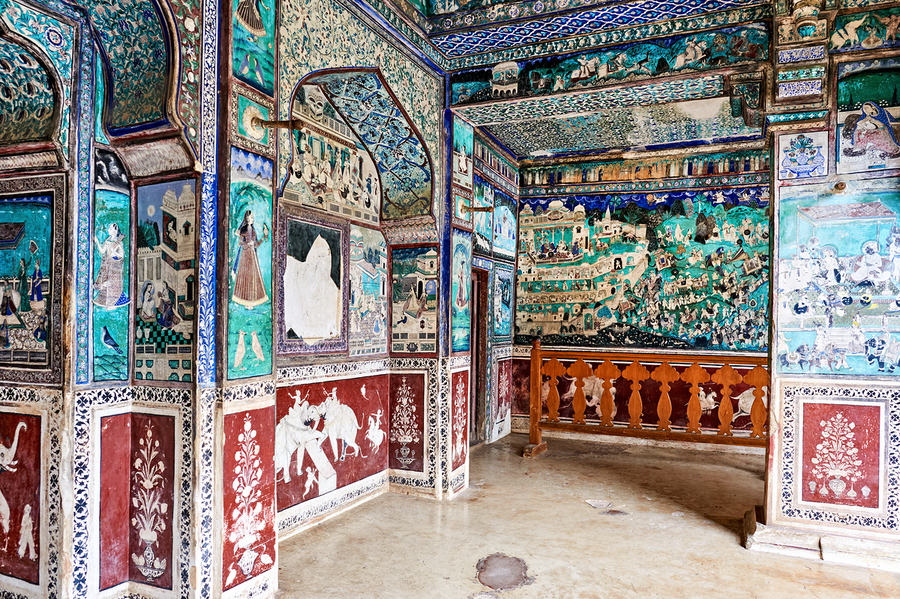 Visitors admire the detailed decorations and paintings at Taragarh Fort in Bundi Rajasthan. The fort showcases rich culture and history.