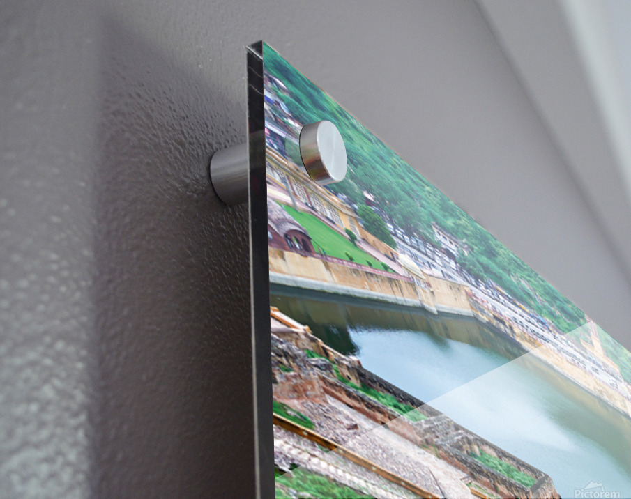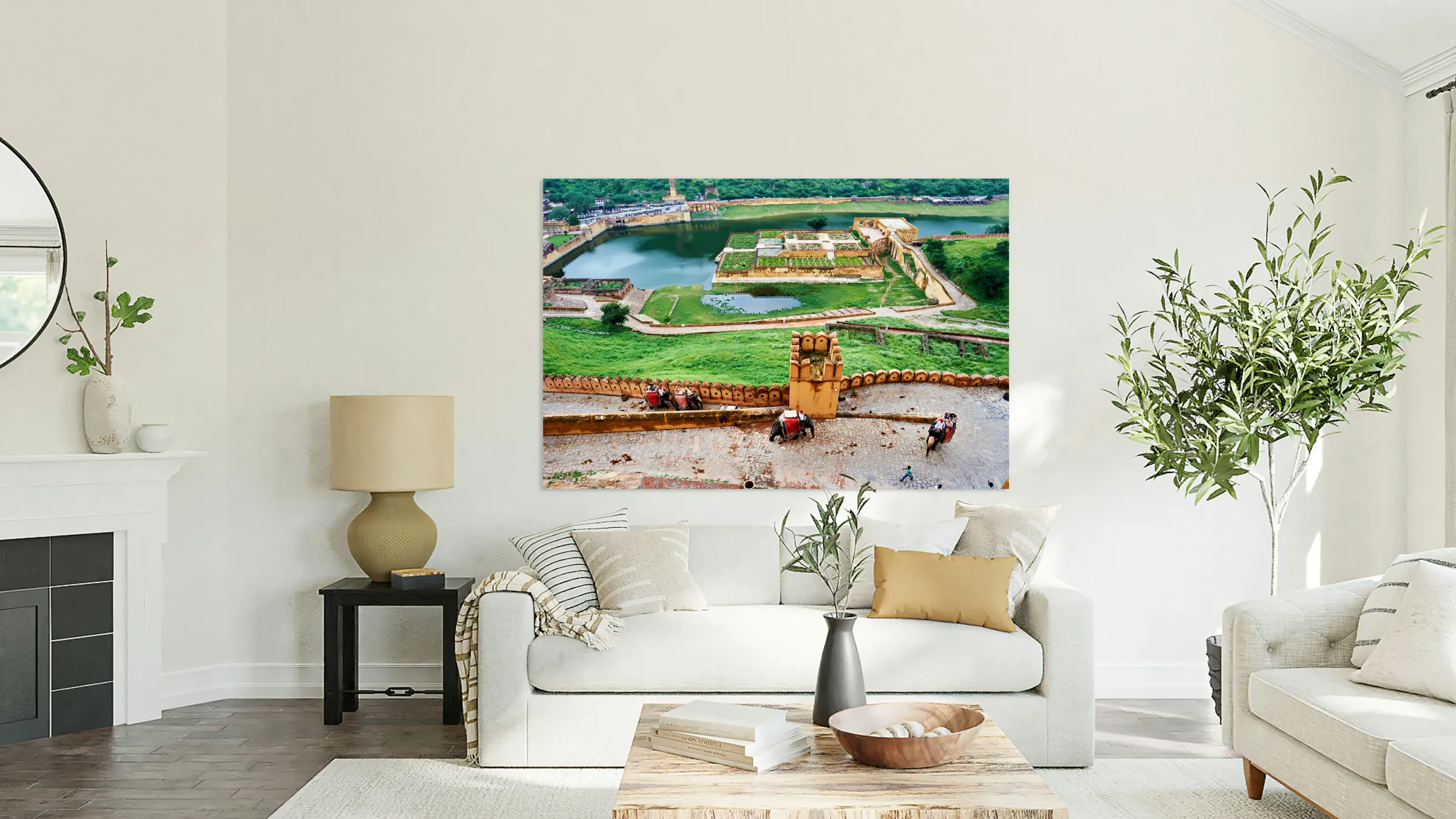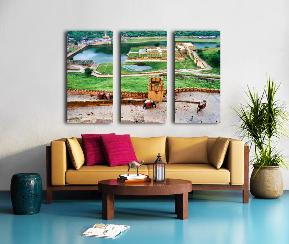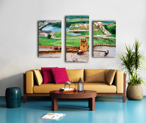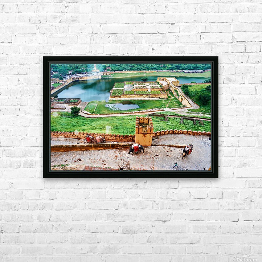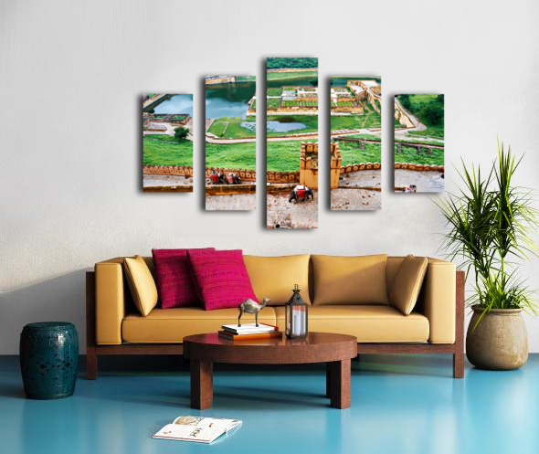 Exploring Amber Palace in Rajasthan with visitors and elephants Frame print