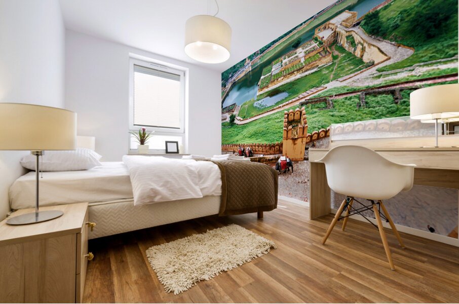 Get this artwork "Exploring Amber Palace in Rajasthan with visitors and elephants" in a framed print.
