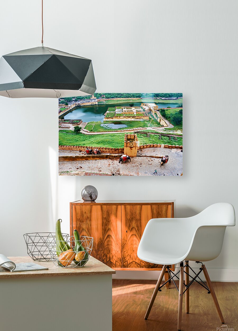 Exploring Amber Palace in Rajasthan with visitors and elephants Picture Frame Printing