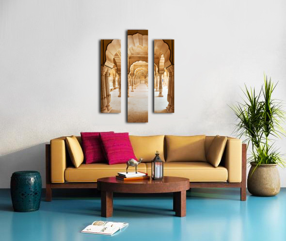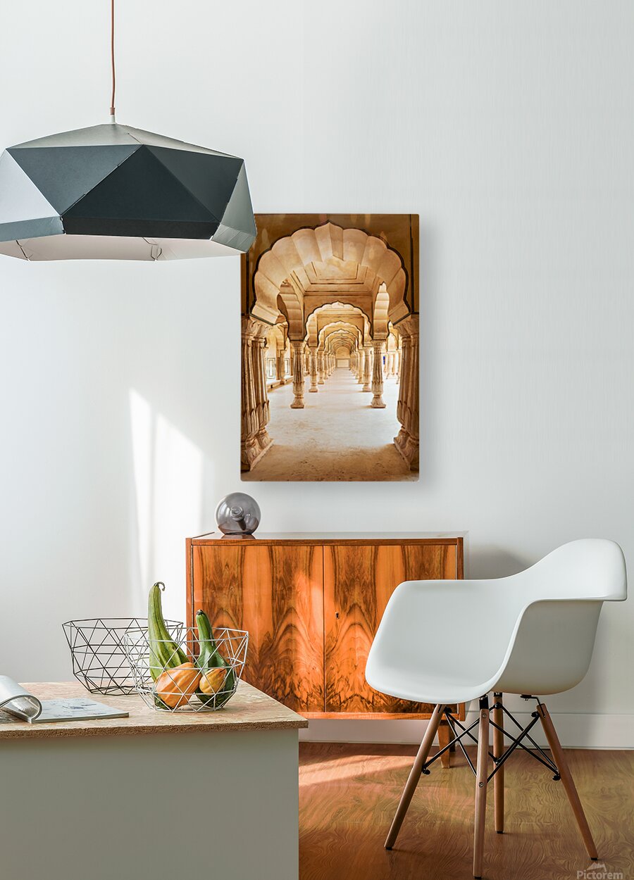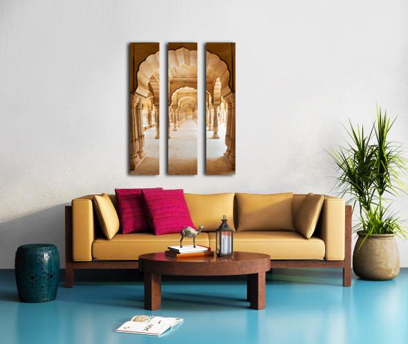Get this artwork "Amber Palace hall with arches and columns in Rajasthan India" in a framed print.
