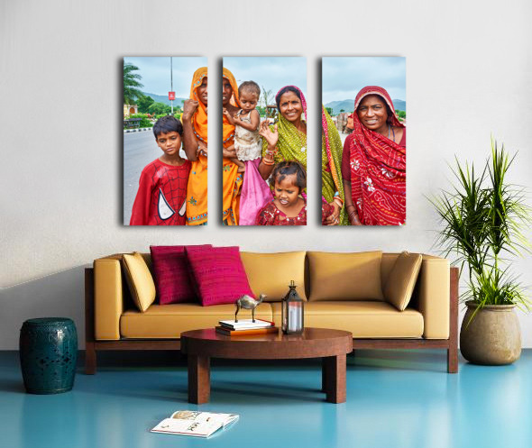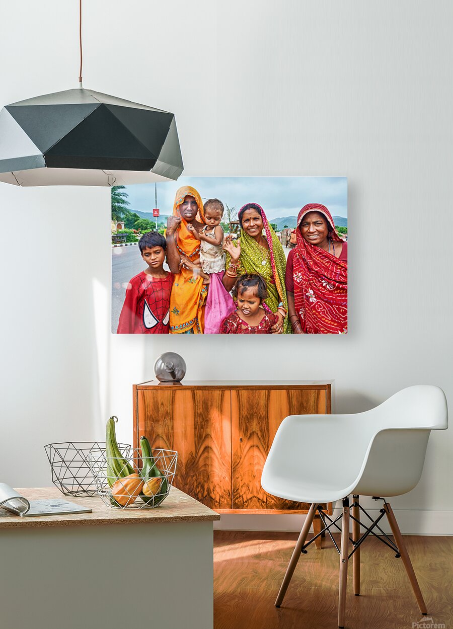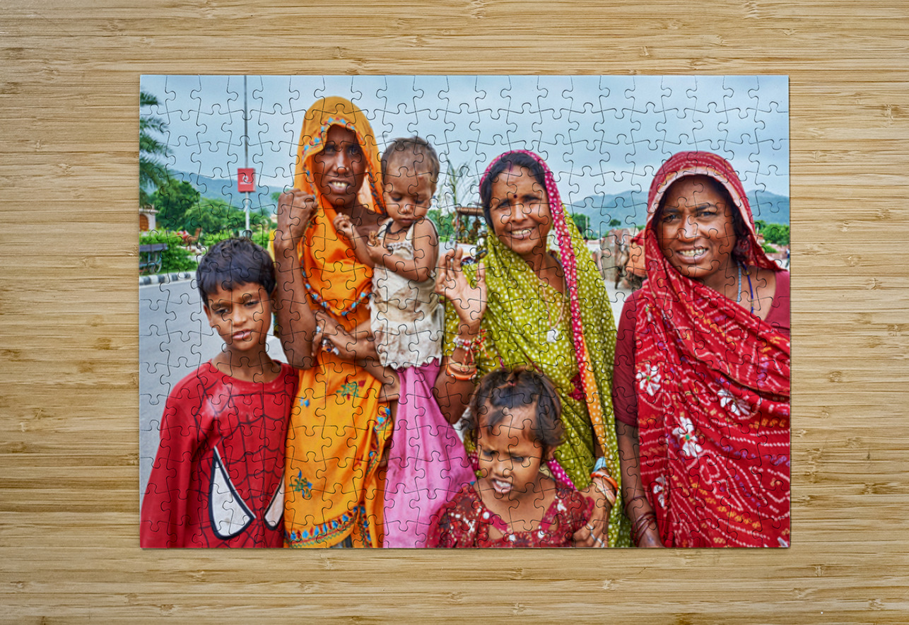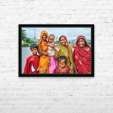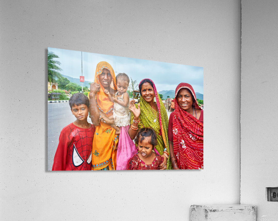Women and children dressed in colorful clothes stand together in Amber Rajasthan. They share smiles while enjoying their time outdoors.