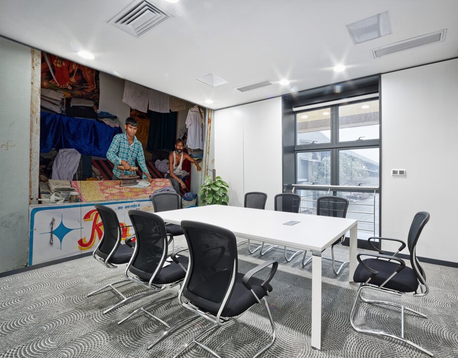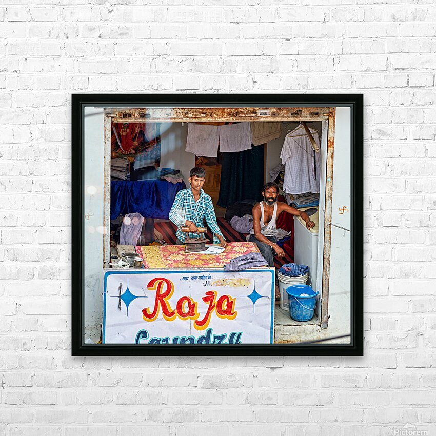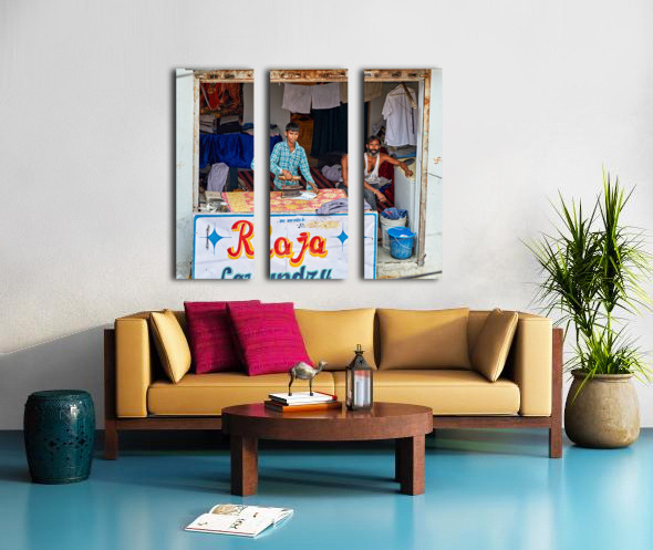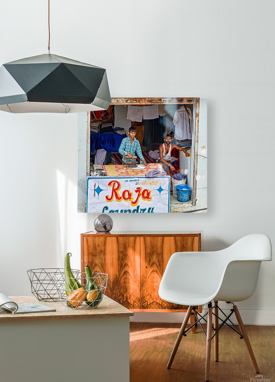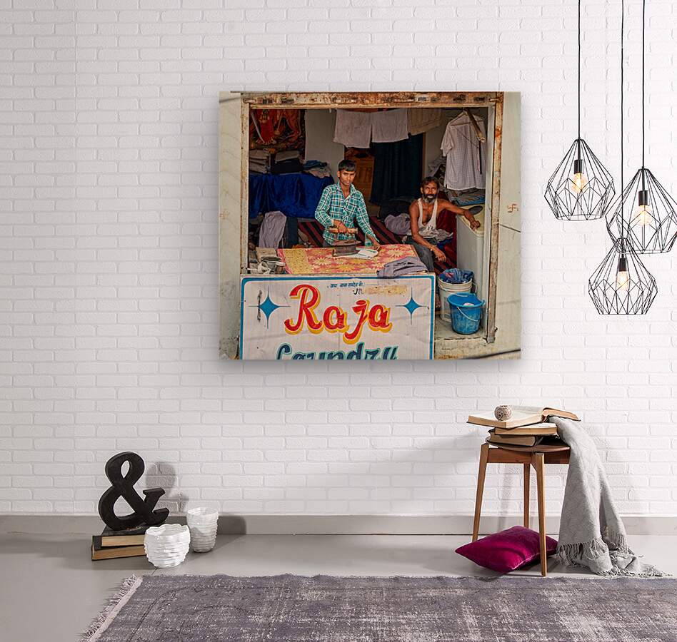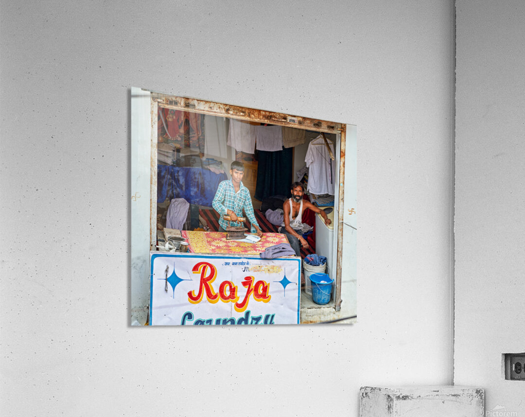 Two men are ironing clothes in a shop in Bundi Rajasthan. One man is actively using an iron while the other observes.