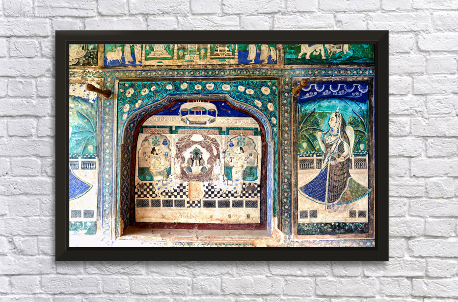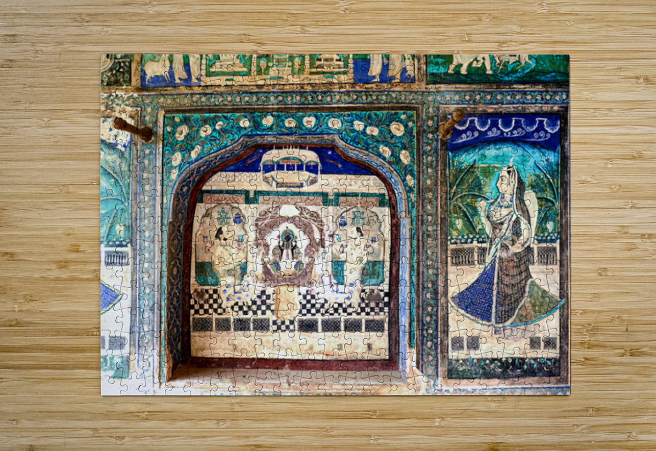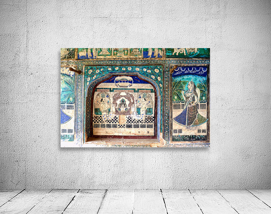 Bright colors and detailed designs show art at Taragarh Fort in Bundi Rajasthan. This site reflects local culture and historical themes.