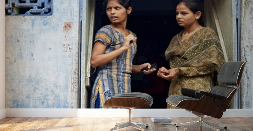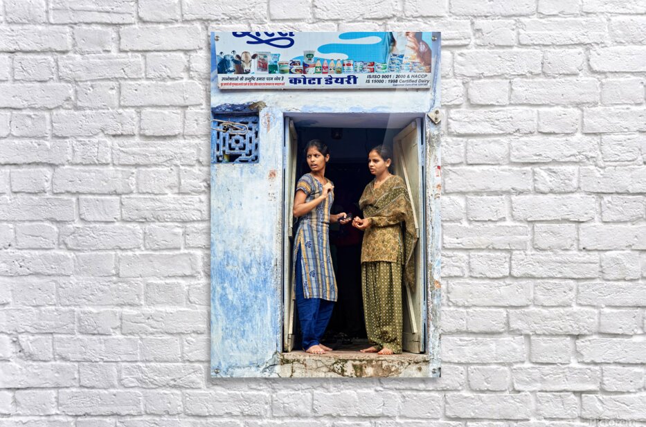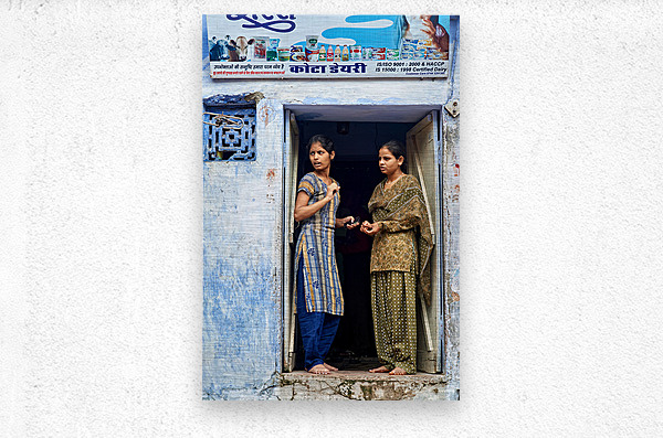Get this artwork "Women stand at their house door in Bundi Rajasthan" in a framed print.