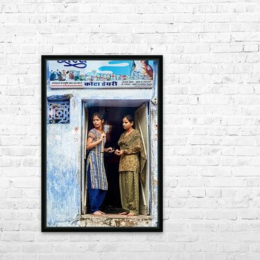 Women stand at their house door in Bundi Rajasthan Picture Frame Printing