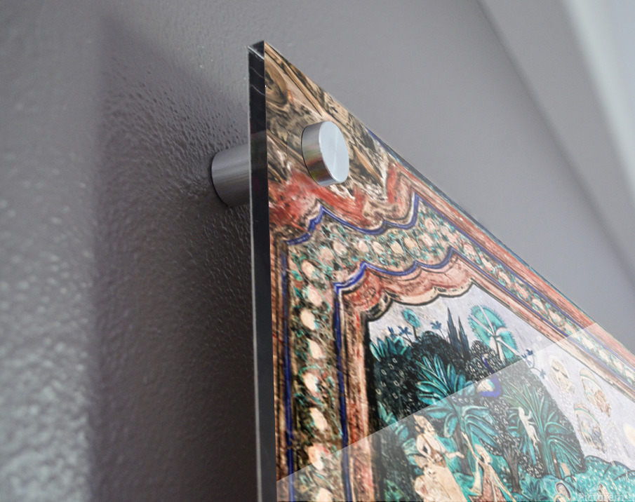 Printed to the edge - Ready to hang - provided with 4 premium polished aluminum stand off ( wall screws and mounting hardware provided )