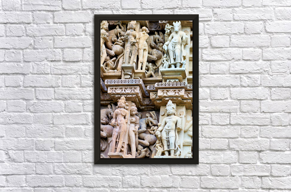 The Hindu temples in Khajuraho display detailed carvings of deities and scenes from ancient texts. The intricate designs showcase artistic skill.