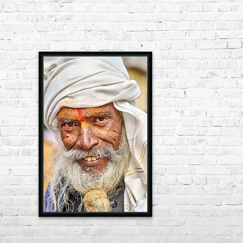 Man with white beard and turban in Orchha Madhya Pradesh India Picture Frame Printing