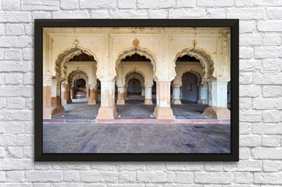 "Exploring the fort complex in orchha madhya pradesh india" in a framed print.