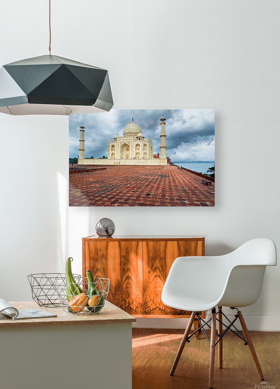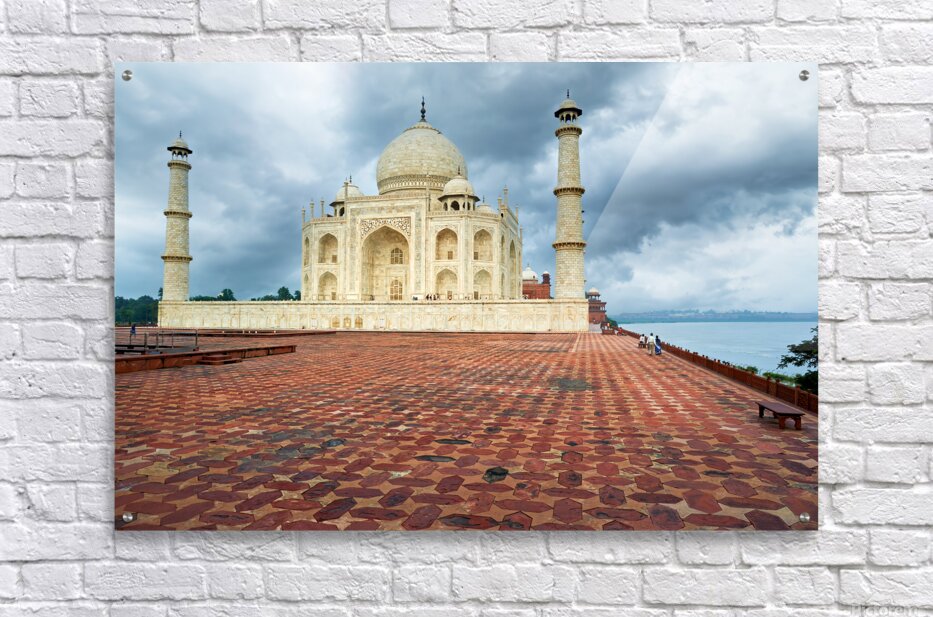 ABOUT THIS ARTWORK: TAJ MAHAL IN AGRA DURING CLOUDY WEATHER WITH EMPTY COURTYARD