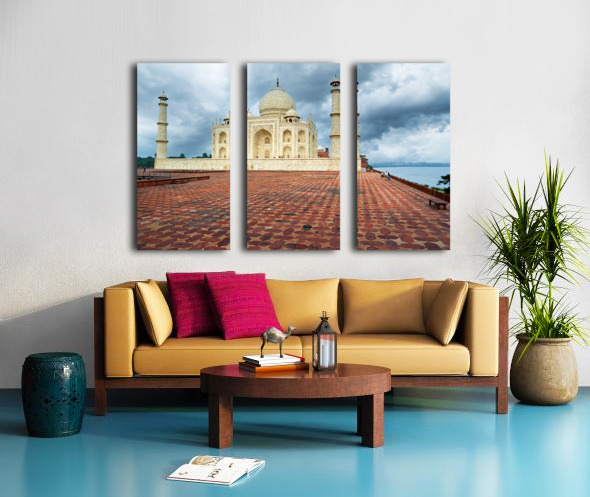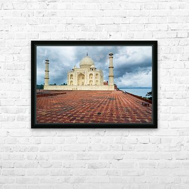 Get this artwork "Taj Mahal in Agra during cloudy weather with empty courtyard" in a framed print.