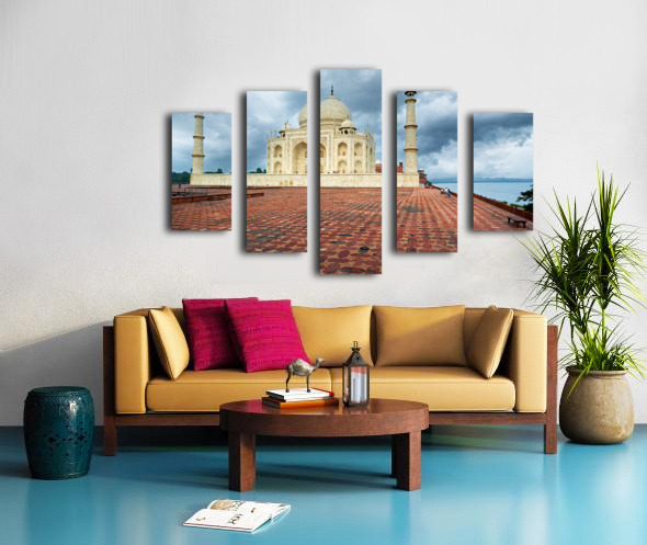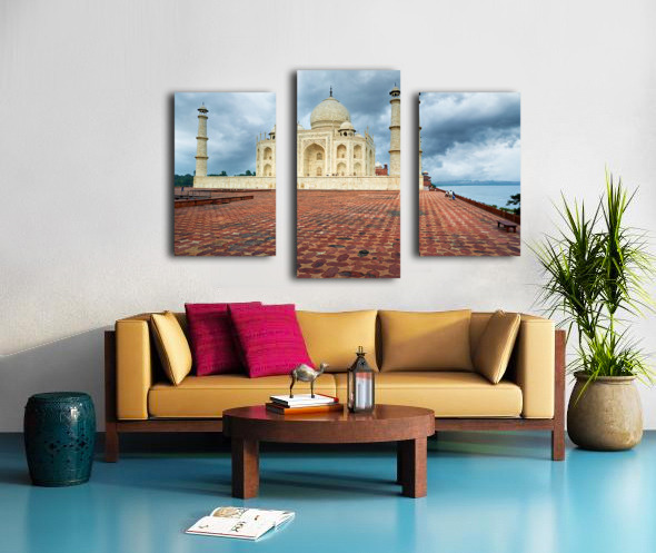 Taj Mahal in Agra during cloudy weather with empty courtyard Frame print
