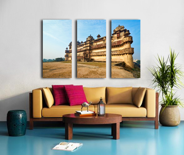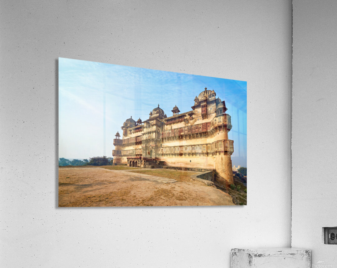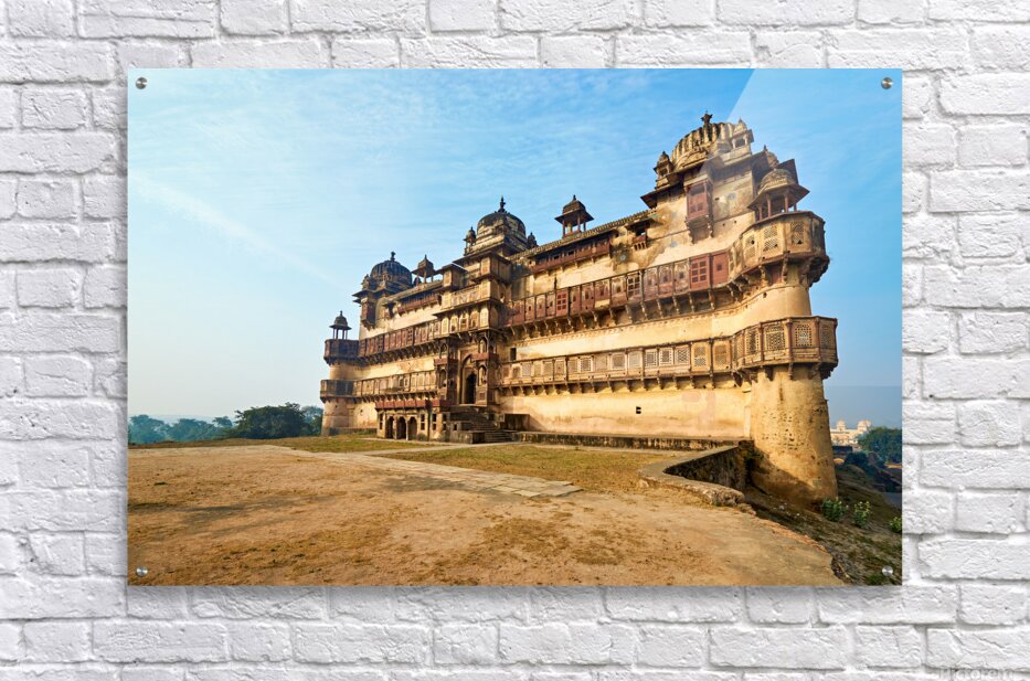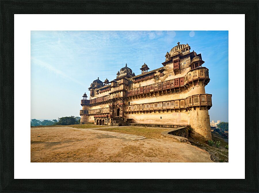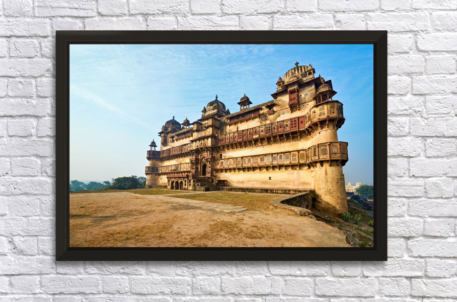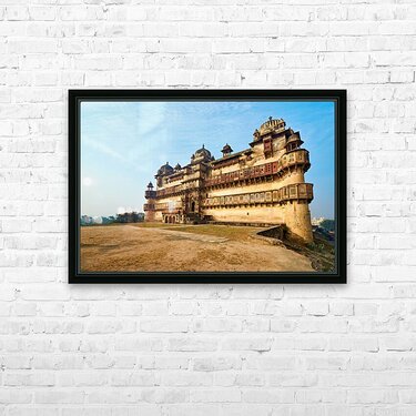 "Orchhas fort complex displays ancient architecture" in a framed print.