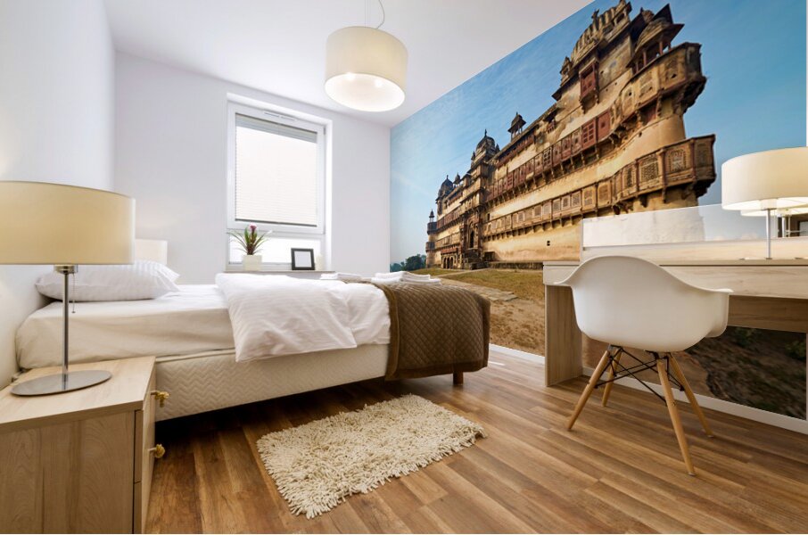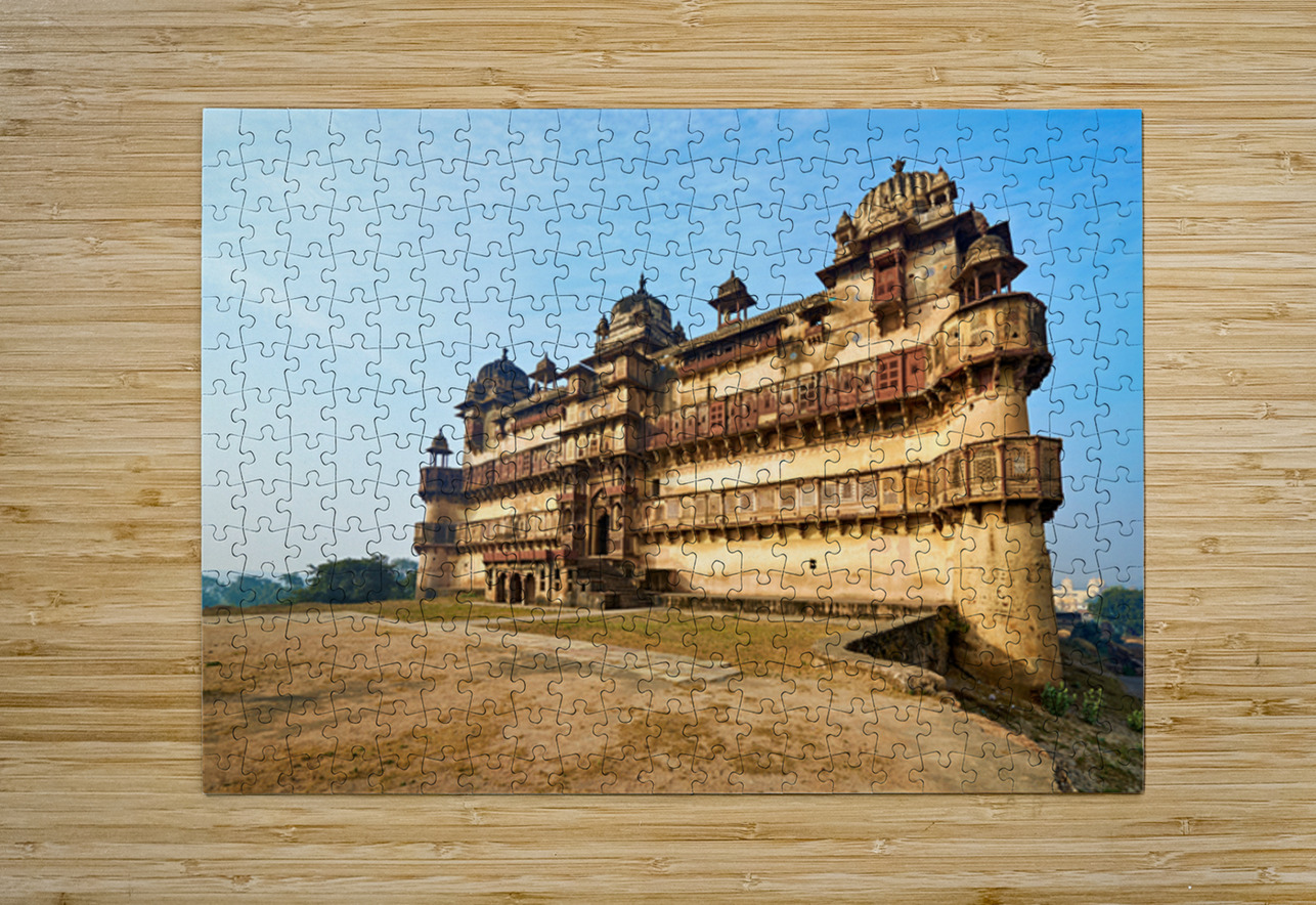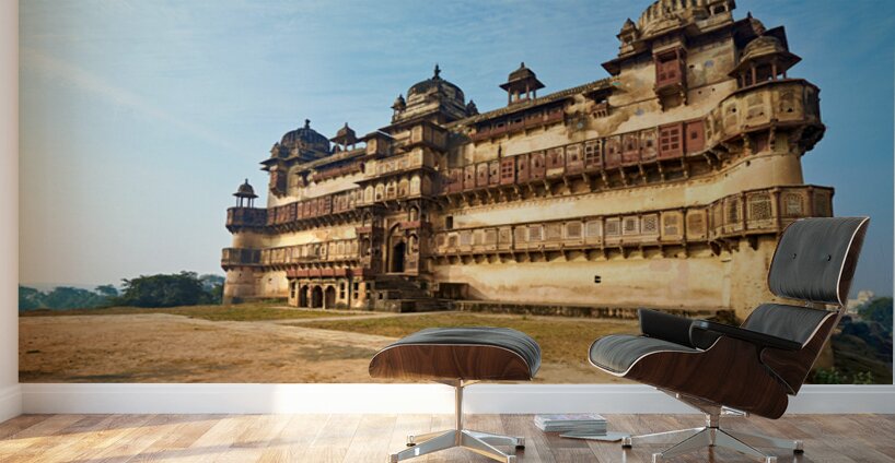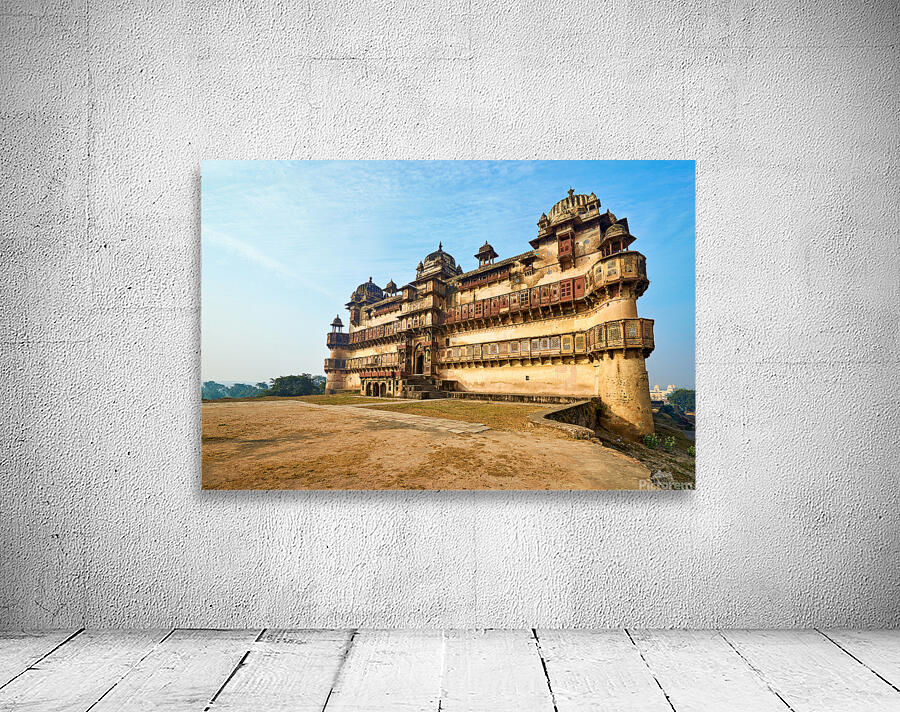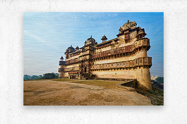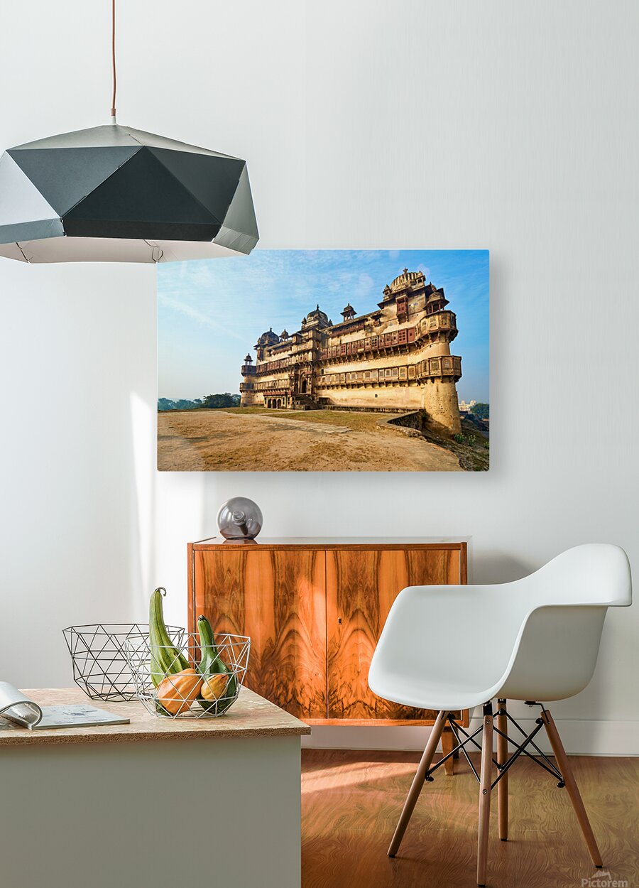 "Orchhas fort complex displays ancient architecture" in a framed print.