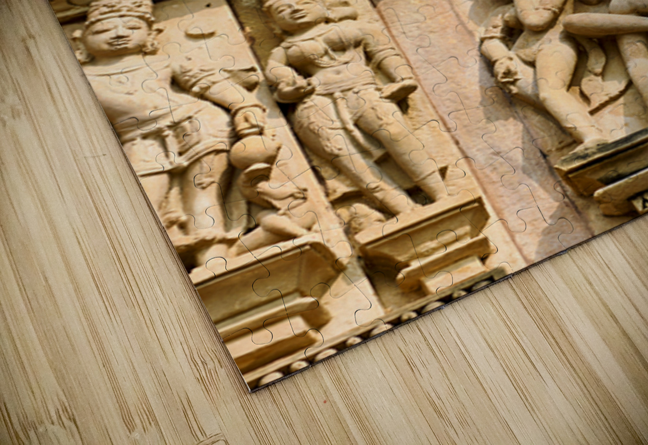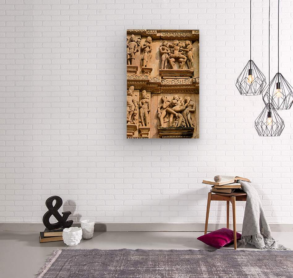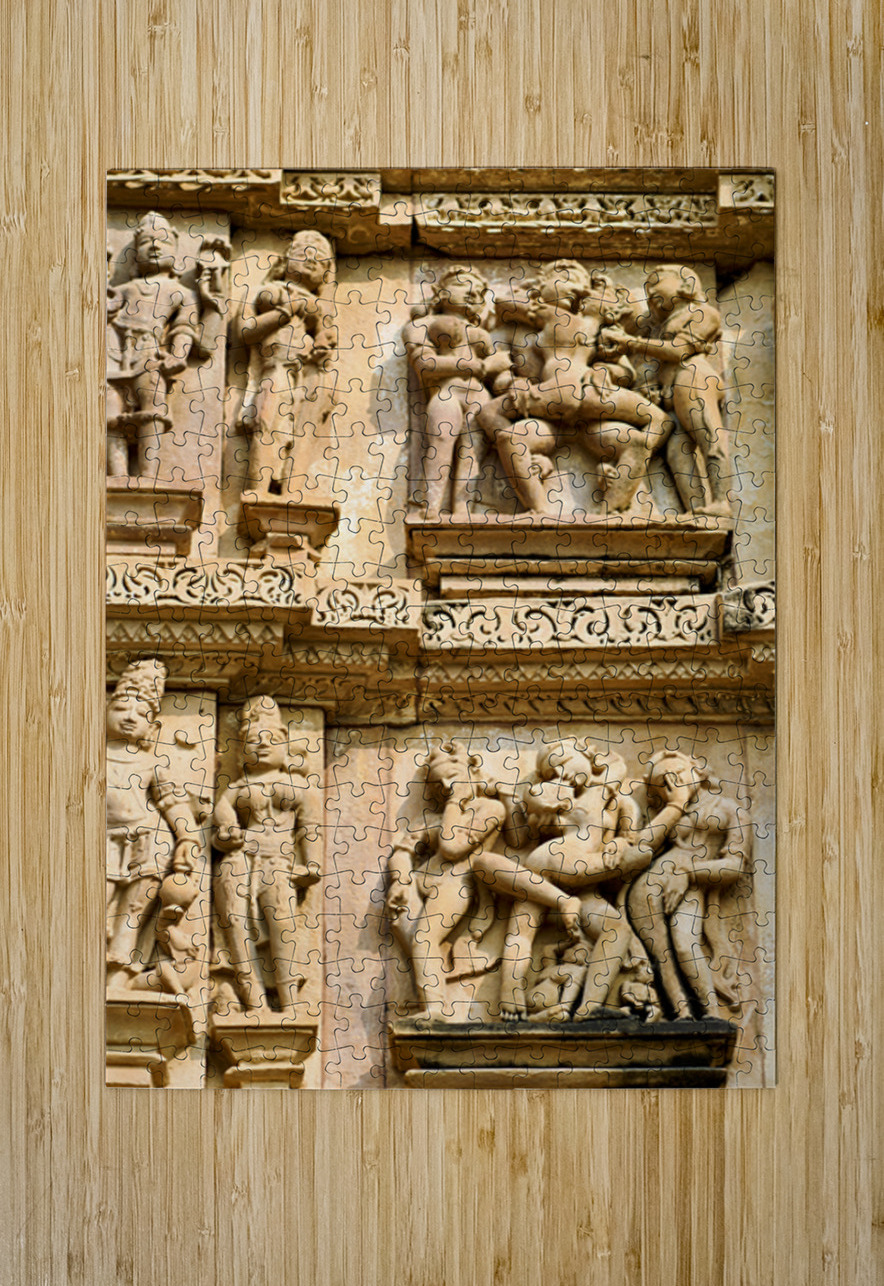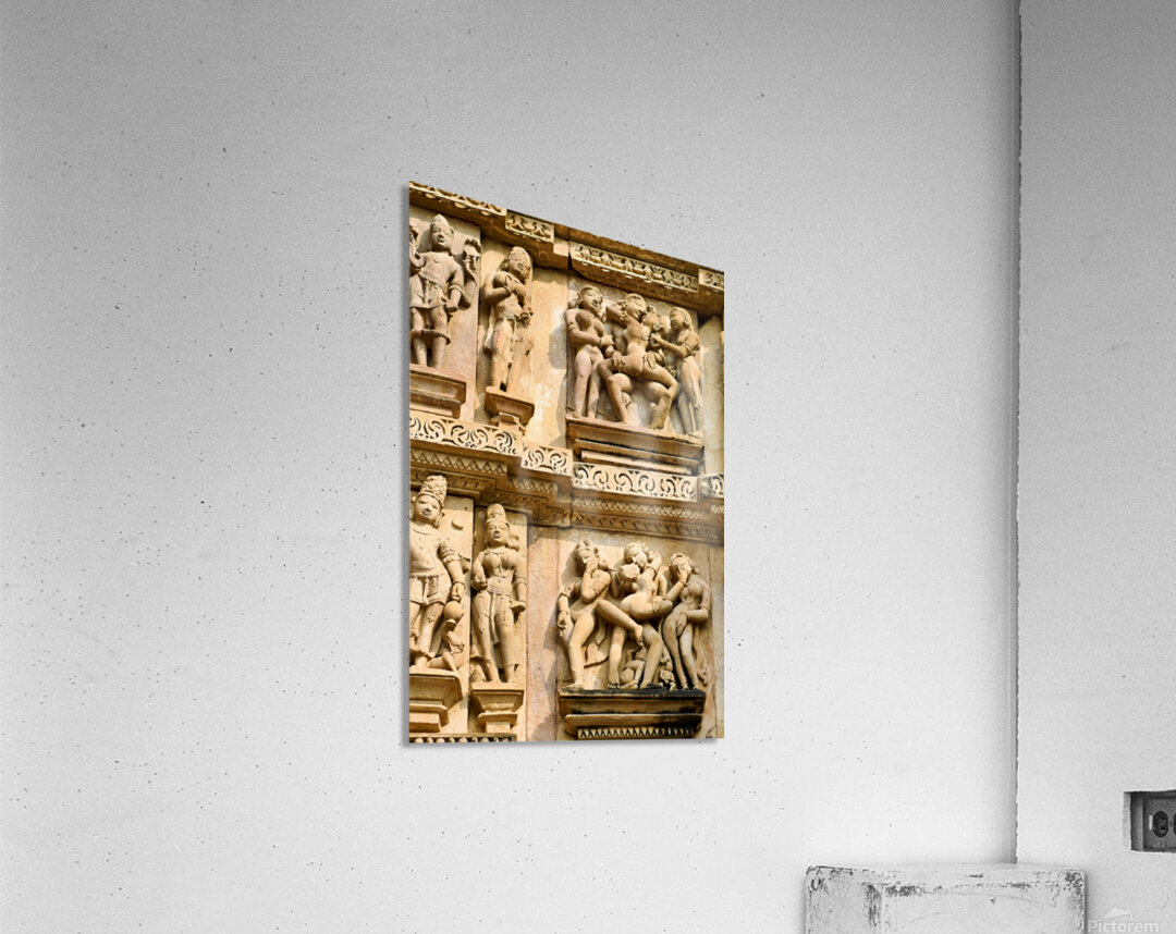 Carvings on the walls at Khajuraho illustrate human forms in various actions. These are sacred Hindu temples in Madhya Pradesh India.