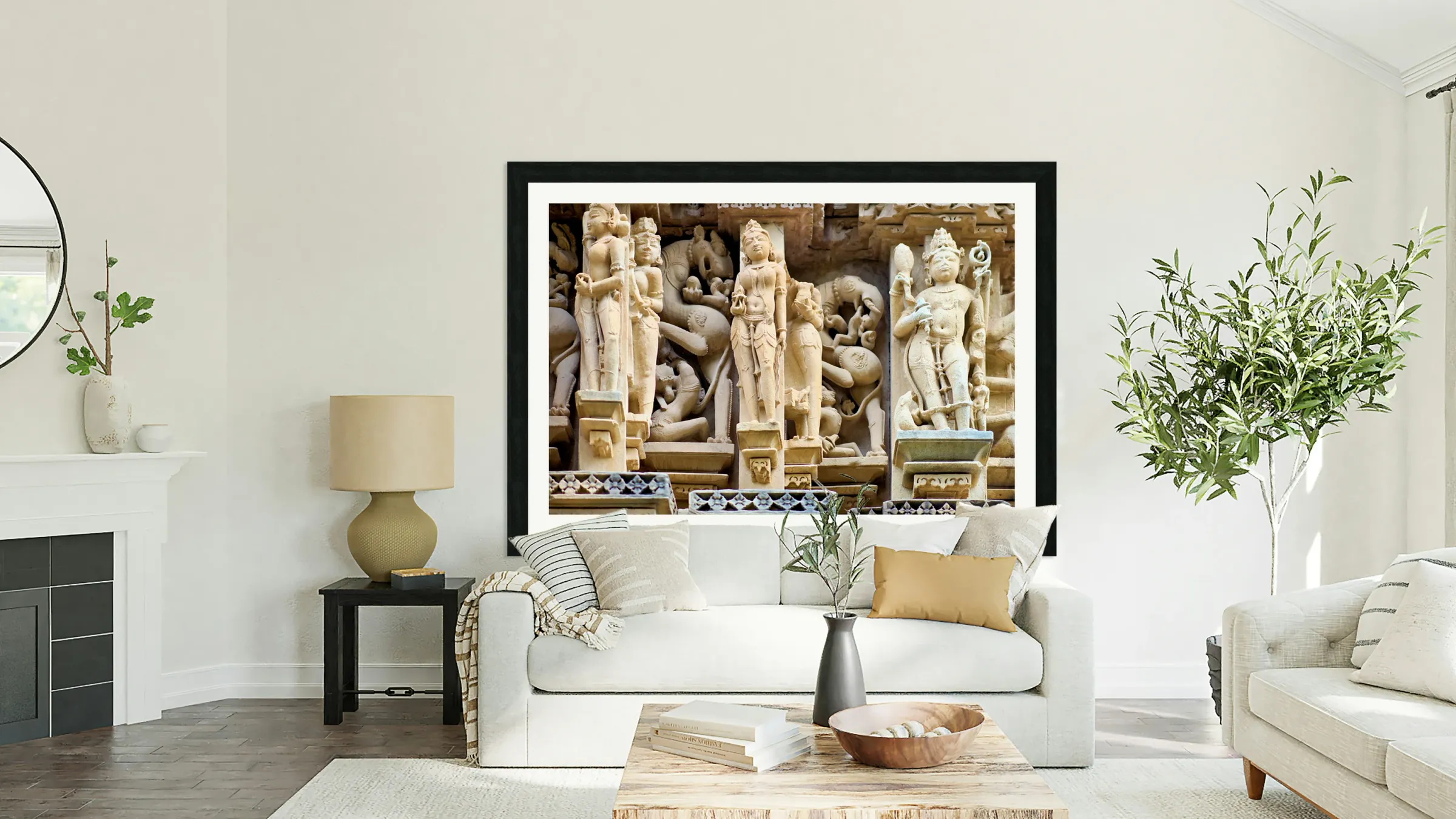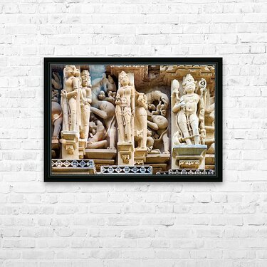 Hindu temples in Khajuraho show ancient art and carvings Picture Frame Printing