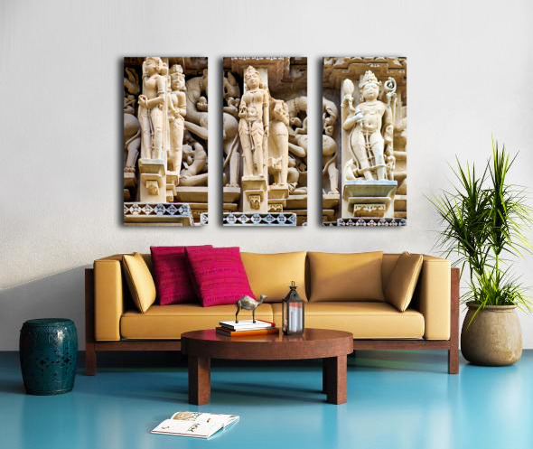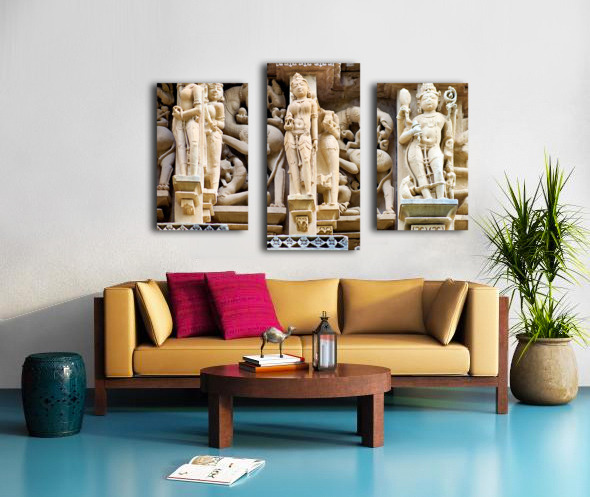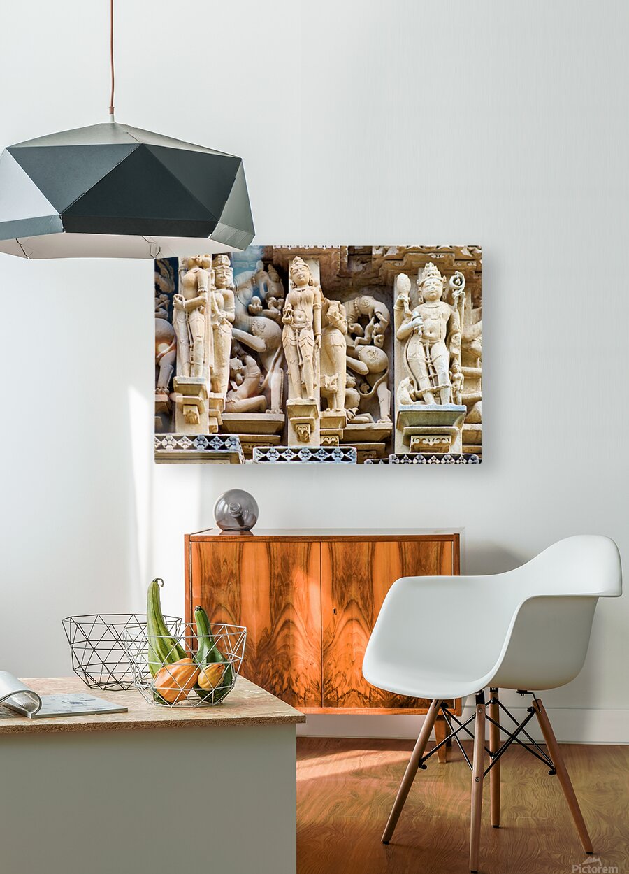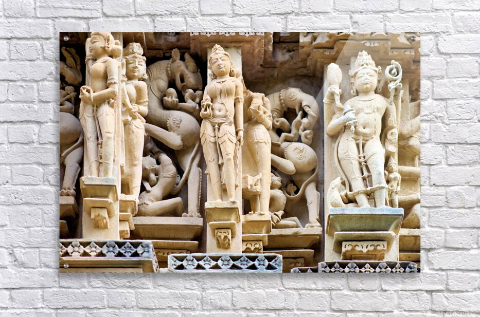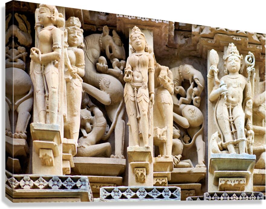 Get this artwork "Hindu temples in Khajuraho show ancient art and carvings" in a framed print.