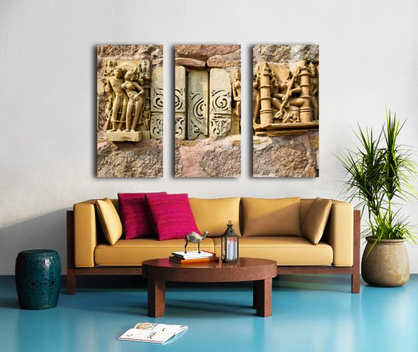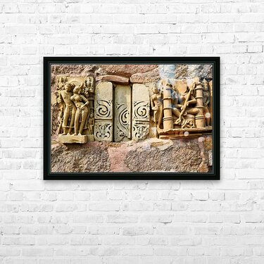 Sculptures on Hindu temples in Khajuraho Madhya Pradesh India Frame print