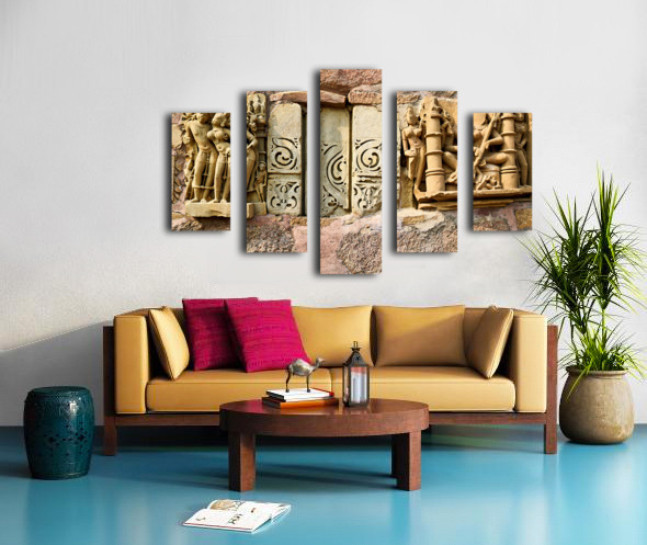Get this artwork "Sculptures on Hindu temples in Khajuraho Madhya Pradesh India" in a framed print.