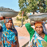 WOMEN CARRY MATERIALS IN VARANASI NEAR THE RIVER BANK