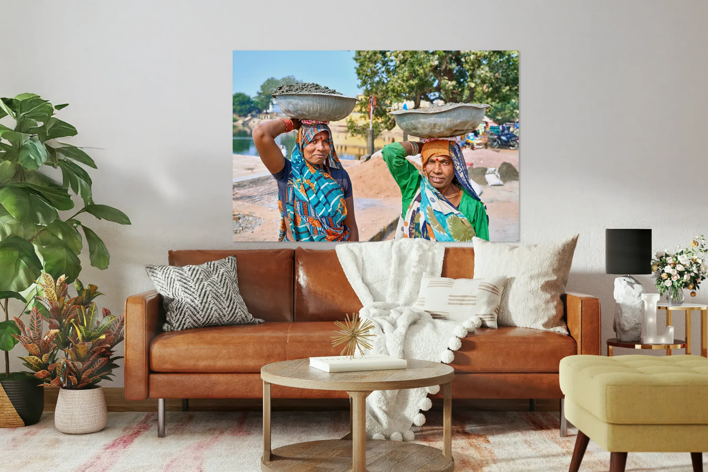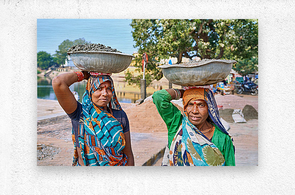 ABOUT THIS ARTWORK: WOMEN CARRY MATERIALS IN VARANASI NEAR THE RIVER BANK