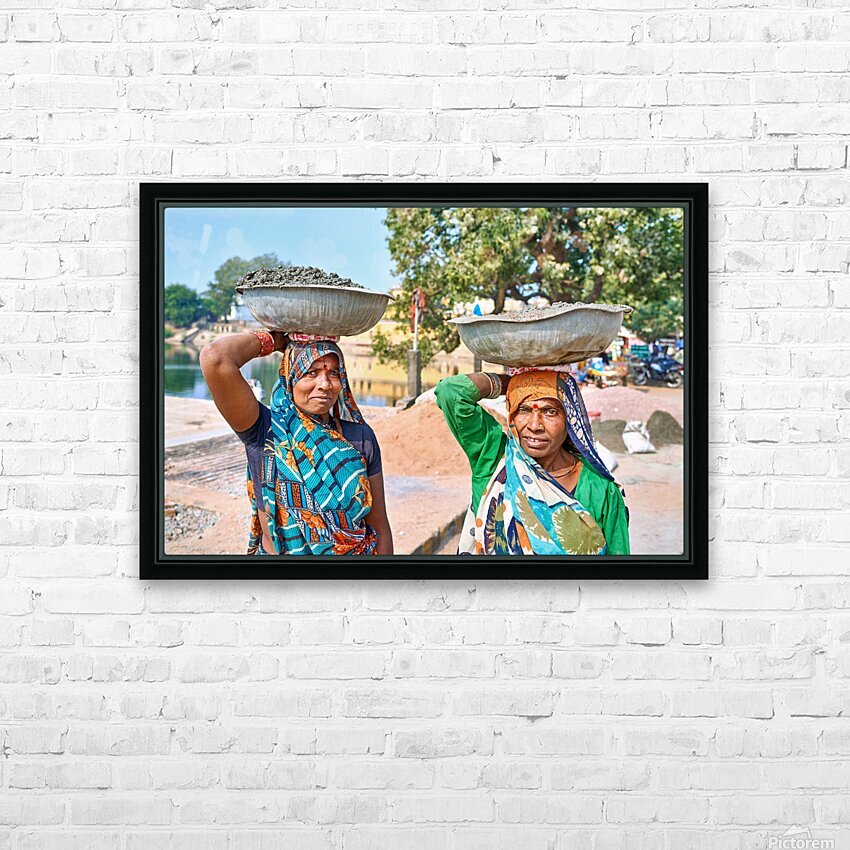 Women carry materials in Varanasi near the river bank Picture Frame Printing