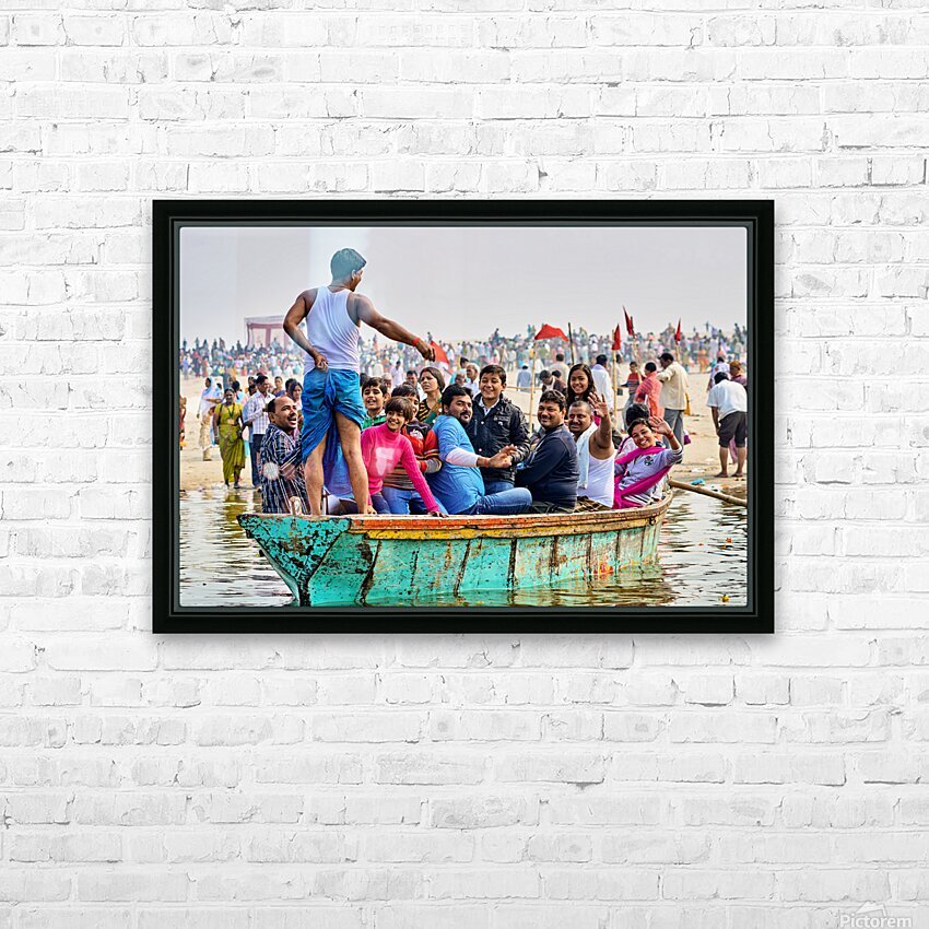 Get this artwork "People sit on a boat on the Ganges River" in a framed print.