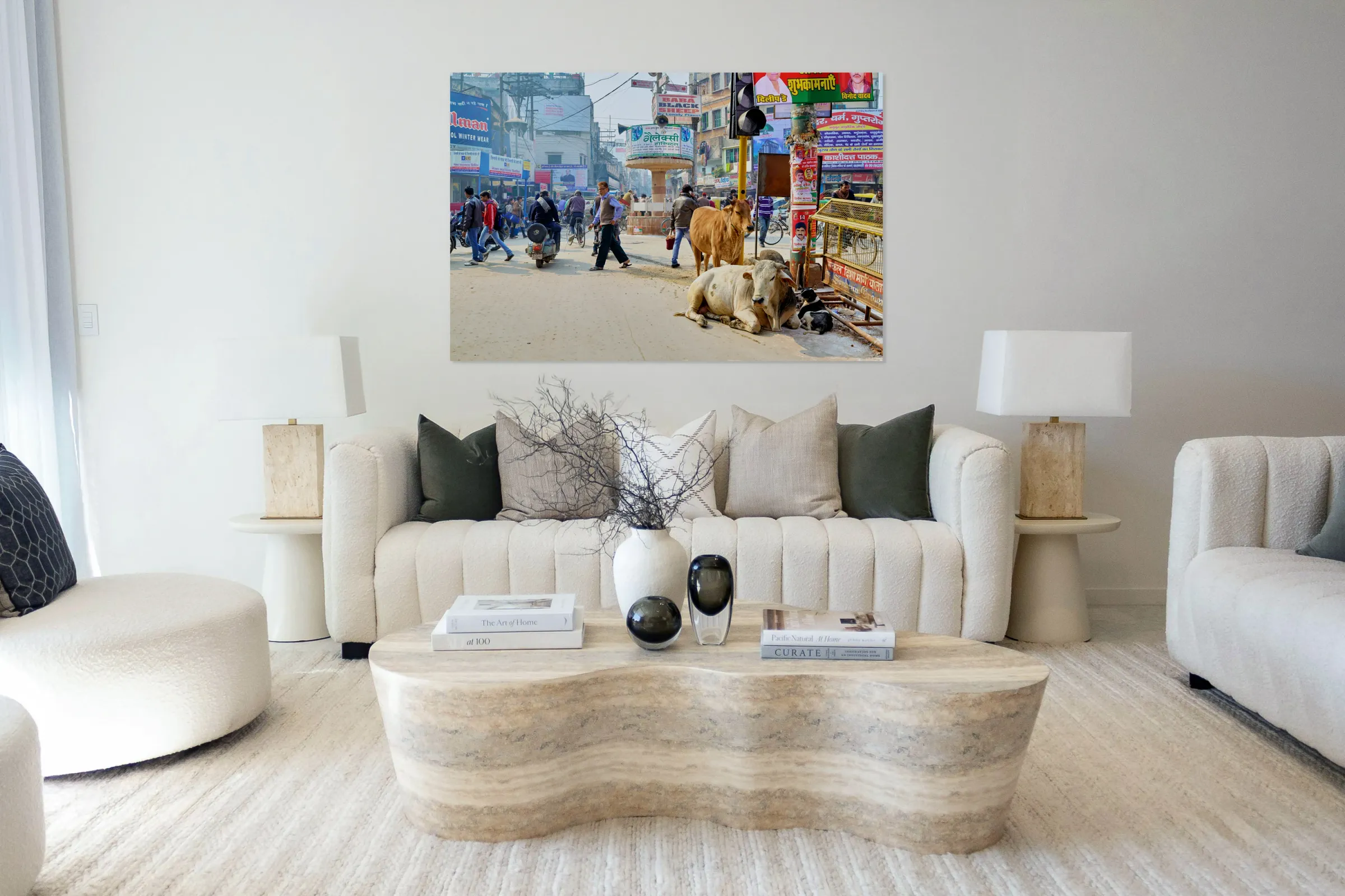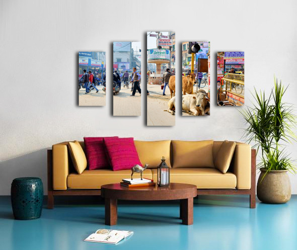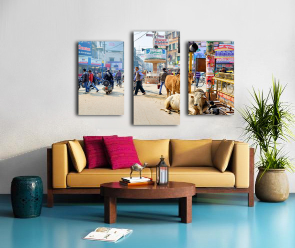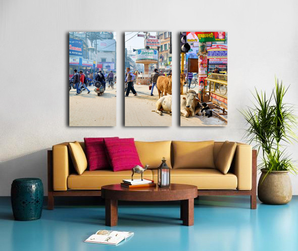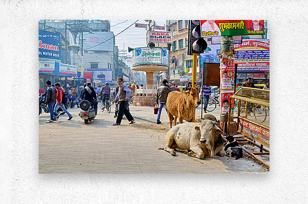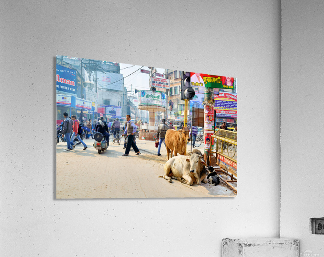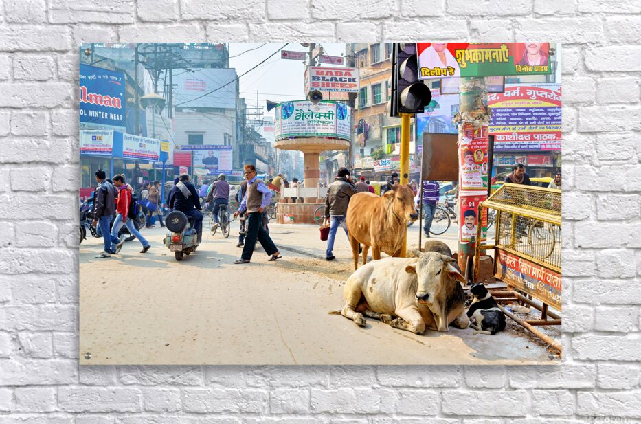 Get this artwork "Cows roam the streets of Varanasi Benares Uttar Pradesh" in a framed print.