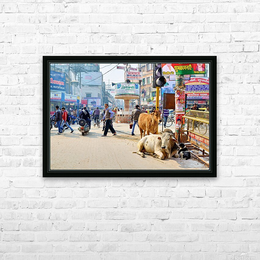 Cows roam the streets of Varanasi Benares Uttar Pradesh Picture Frame Printing